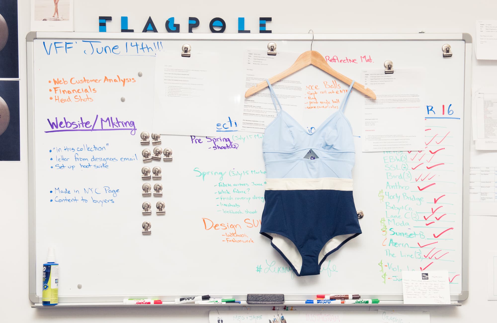 Flagpole is the true story of two best friends from South Florida, Jaime Barker and Megan Balch, who met in high school and shared a love for fashion (in the form of Wet Seal and Rainbow flip flops). They always wanted to work together, moved to New York, and had a lightning bolt idea that involved starting a swimwear label inspired by the dance leotards they grew up wearing. The story ends happily—or, rather continues happily, because this is only the beginning. After that initial epiphany (at the age of 22), there were years of sharing a bedroom and living in bunk beds, being told ‘no’ by swimwear buyers from the country’s top stores, and slogging through three binders to create the mother of all business plans. Flagpole is a story of triumph. It is a story of finish-each-other’s-sentences friendship. It is a story of super high quality swimwear that is produced in New York and that is now backed by companies like Net-A-Porter and Saks (come October!) and people like Erika Bearman. In other words, it’s a good story. Read on.