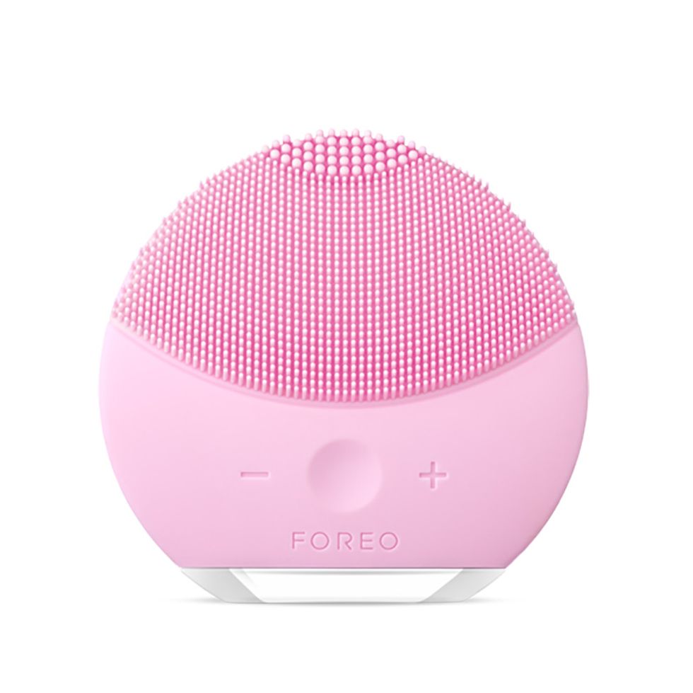 “One of the most important steps is cleansing—to remove layers of costume makeup, use a gentle cleanser to emulsify and the t-sonic pulsations from a FOREO Luna Mini 2 to drive out impurities—dirt, oil, and makeup residue—from your skin so they’re not left to clog your pores later. Start by cleansing your chin, and move along your jaw to your ear using upward strokes, then continue to cleanse the whole cheek. Repeat on the opposite side. Then, start from the center of your forehead, moving the cleanser with outward strokes. To cleanse the nose, glide up and down one side, and switch to the other side.” —SS