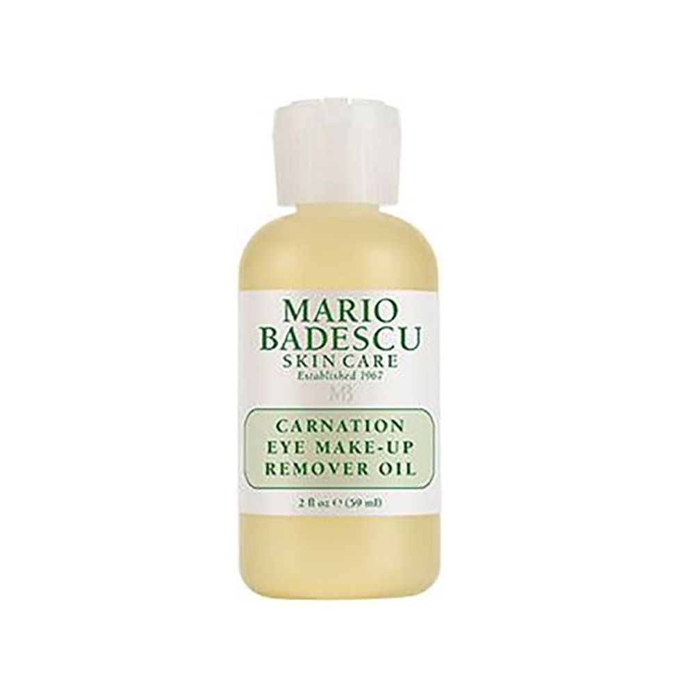 “Most makeup is oil-based, and since oil dissolves oil, use a makeup remover oil like Mario Badescu Carnation Eye Makeup Remover Oil, or an oil-based cold cream like Mario Badescu Cucumber Makeup Remover Cream. Apply enough remover to cover the skin (be careful not to over-apply to the eye area so that oil doesn’t seep into the eyes) and let it sit for a minute. This gives the remover some time to make contact with the makeup and get to work breaking it down. Next, take a large cotton pad or clean face cloth, saturated with warm water, and gently wipe over the face in outward sweeping motions. Be careful not to be too rough with your skin. No pulling or tugging. If any makeup remains, repeat.” —EA