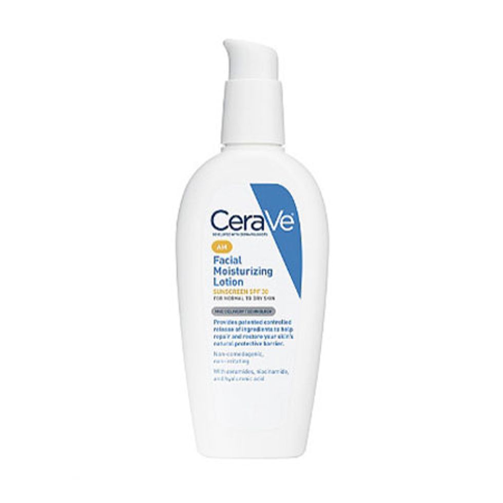 For sun protection: “CeraVe AM Facial Moisturizing Lotion Broad Spectrum SPF 30—contains niacinamide and sunscreen in one. (And it’s only $15!)” —Stordahl