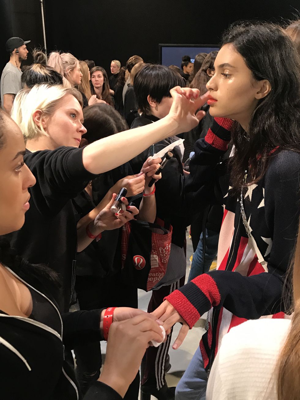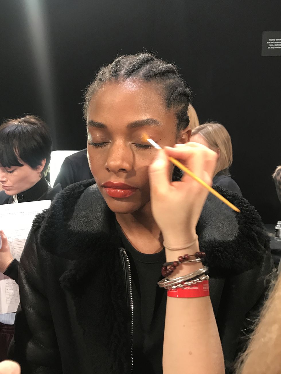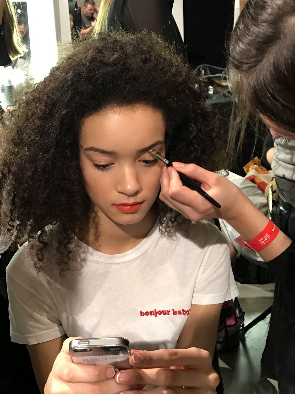“Topshop is always one of the most sought after shows in London, as is access to their backstage. Busy is an understatement but it always has a great atmosphere—the coolest models of the season can be spotted wearing great makeup looks and having lots of fun.