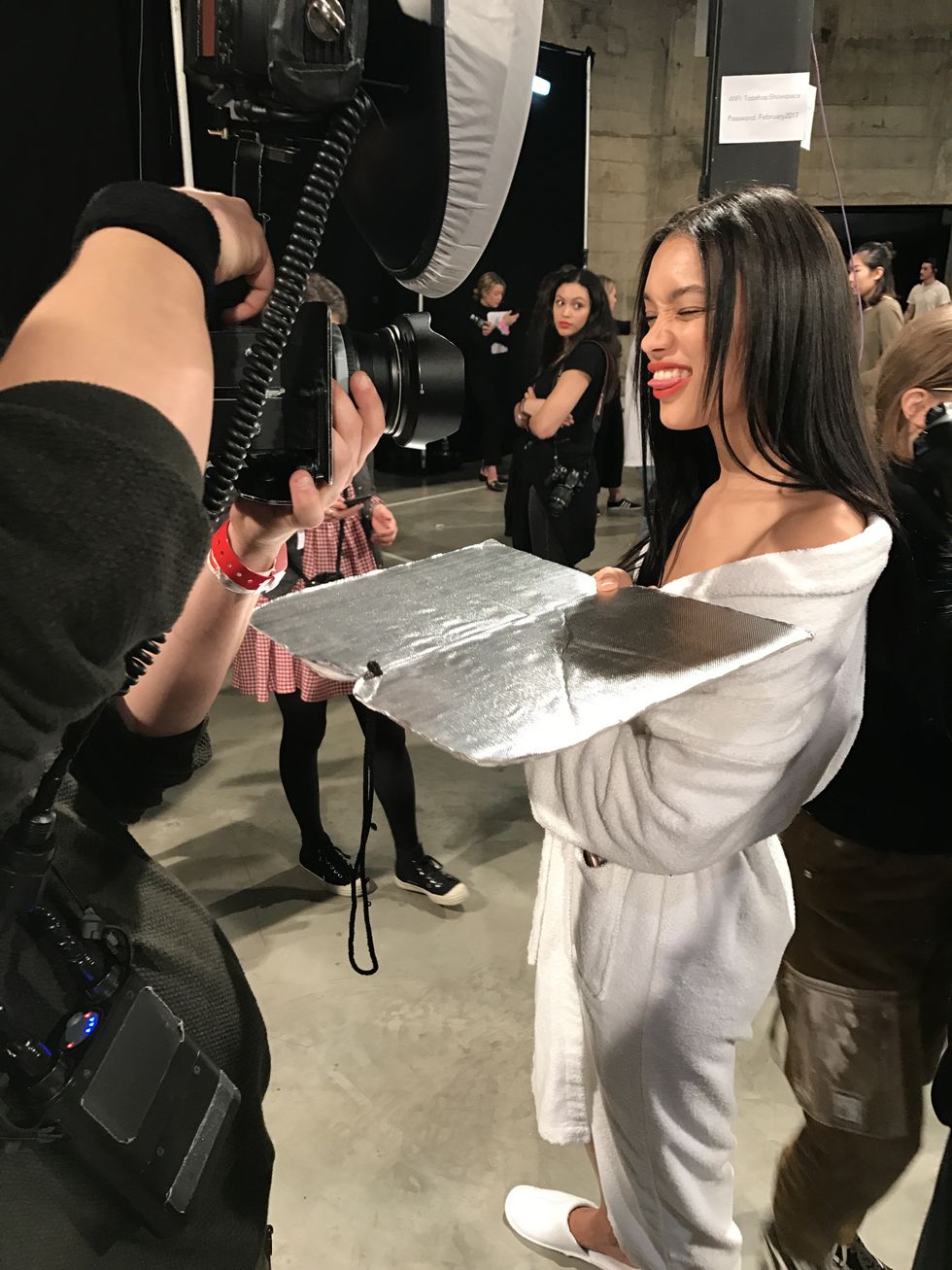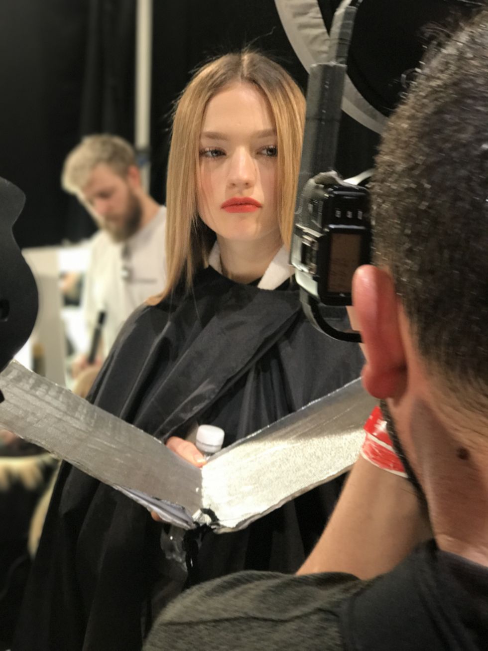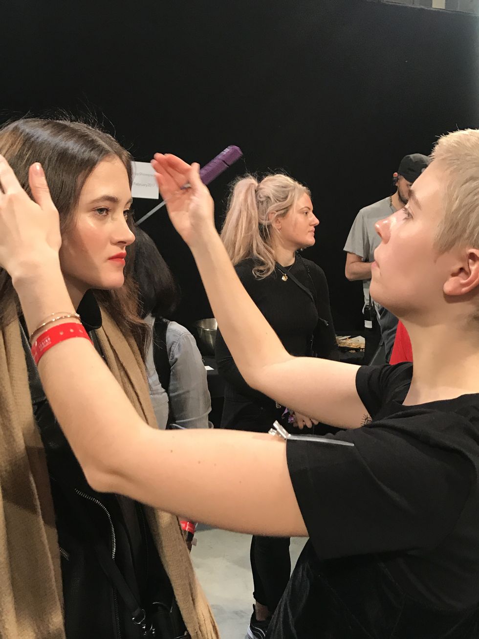 “Topshop is always one of the most sought after shows in London, as is access to their backstage. Busy is an understatement but it always has a great atmosphere—the coolest models of the season can be spotted wearing great makeup looks and having lots of fun.