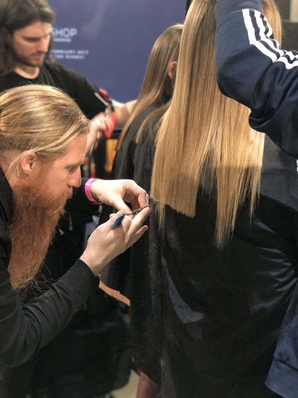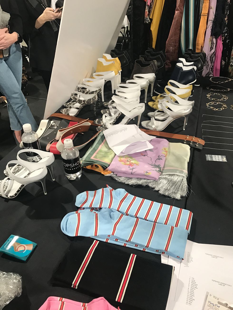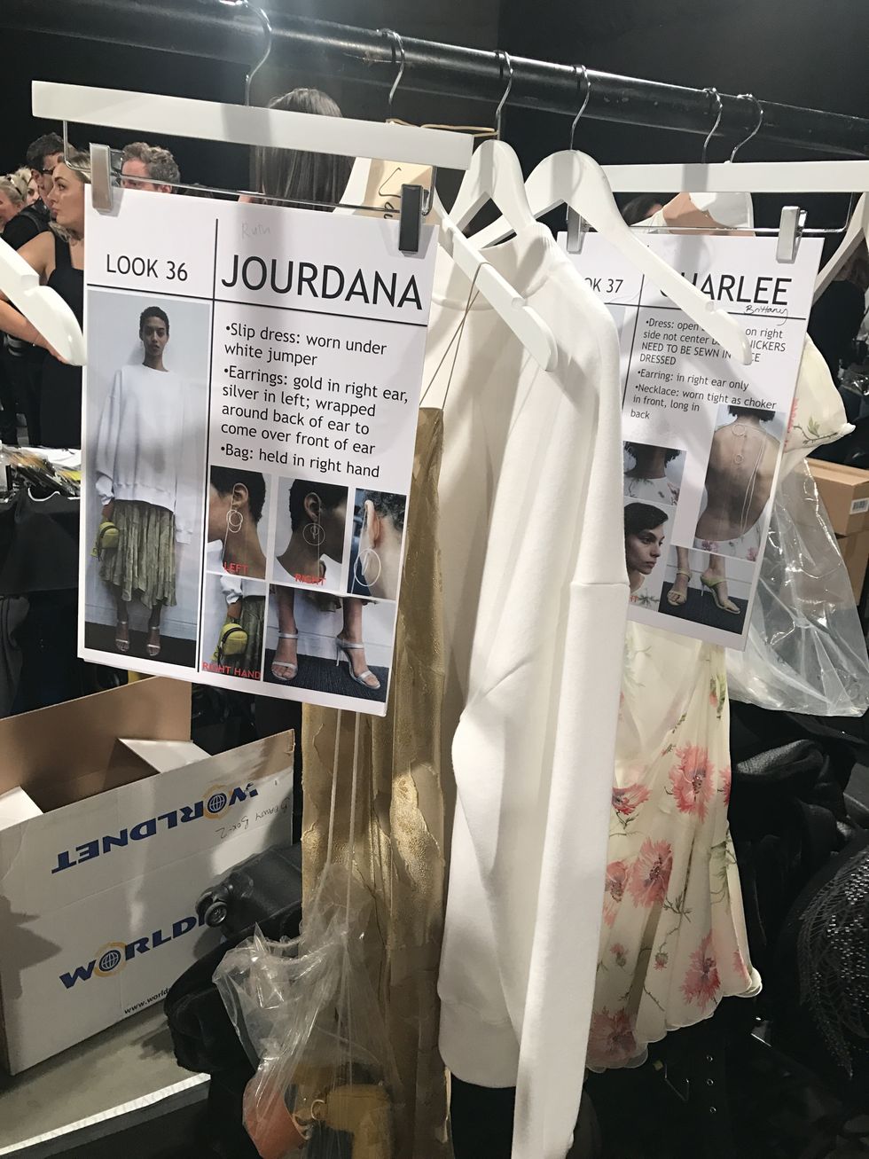 “After watching Roland Mouret’s return to London, I rushed to the Topshop Showspace, which is back again at the Tate Modern museum—a little issue with the car made me slightly late, but it was all good in the end! I arrived just when the models were doing the run through, a great moment to wander around backstage, check which products are being used and see the face charts for makeup. From this I gathered the following: red lips and lots of straightened hair extensions were to be used.”