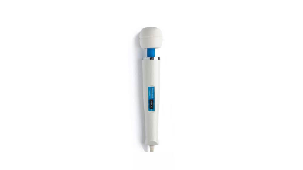 The Magic Wand Personal Massager has been a bestseller since the 1970s and continues to dominate the vibrator market today—a pretty impressive feat, especially considering the fact that the Magic Wand was not designed to be a vibrator at all. Indeed, unlike the rest of the vibrators in my treasure box, the Magic Wand looks very much like a medical device: It is off-white, plugs into a wall (though a cordless option is now available), and is large enough that it could be repurposed as a battering ram in the event of an emergency. It has a head shaped like a tennis ball, which vibrates at two speeds, providing release to your, um, sore muscles as needed. The enclosed manual even outlines various places on the body where it can be used, and to my surprise, the entire lady-bits region was conspicuously absent from the list. Evidently, I am about to go off-piste.