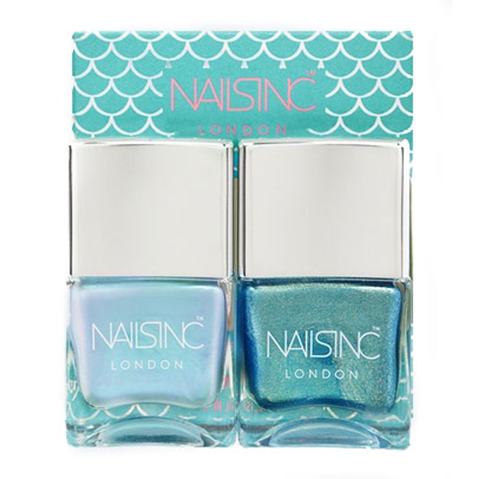“The colors I think we will be seeing all summer are a mix of different metallics. One I really like is Nails Inc Self Made Mermaid Duo. They’re a really gorgeous pair of light green and blue metallics.”