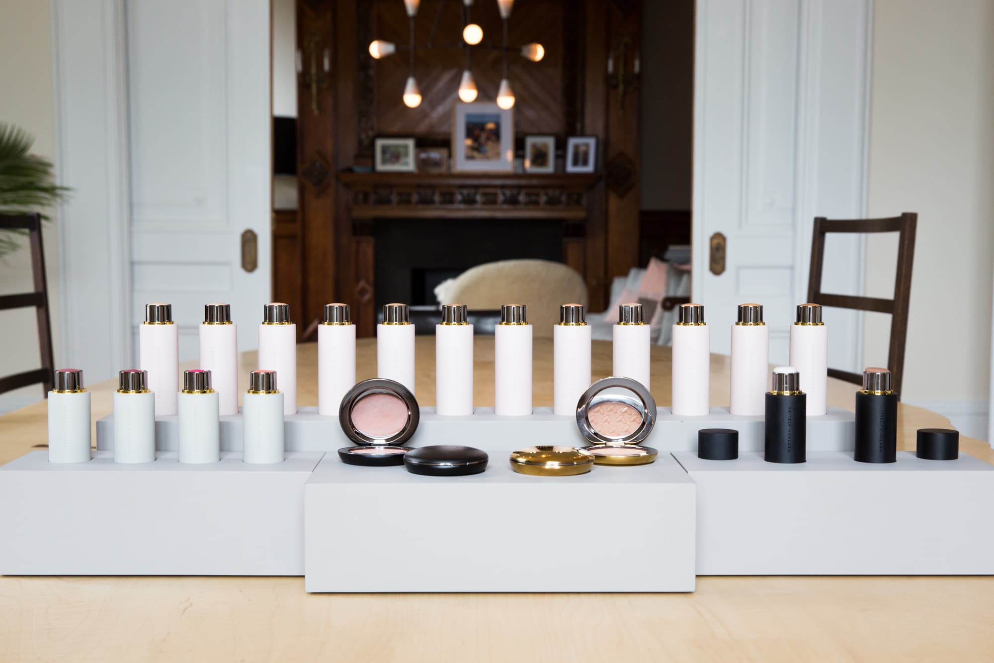 , launched at Barneys last week, mostly consisting of stick cream formulas (the format of foundation with which she first learned to do makeup): 11 foundation shades with more to come, four blushes that you can also use on your lips, one white highlighter, and one tan contour color. The last two products are in compacts: a powder bronzer marked with the Westman Atelier logo, drawn by Westman herself, is the only non-cream product, and the Super Loaded Tinted Highlighter, which we bet will be the sold-out hero product as soon as people catch on.