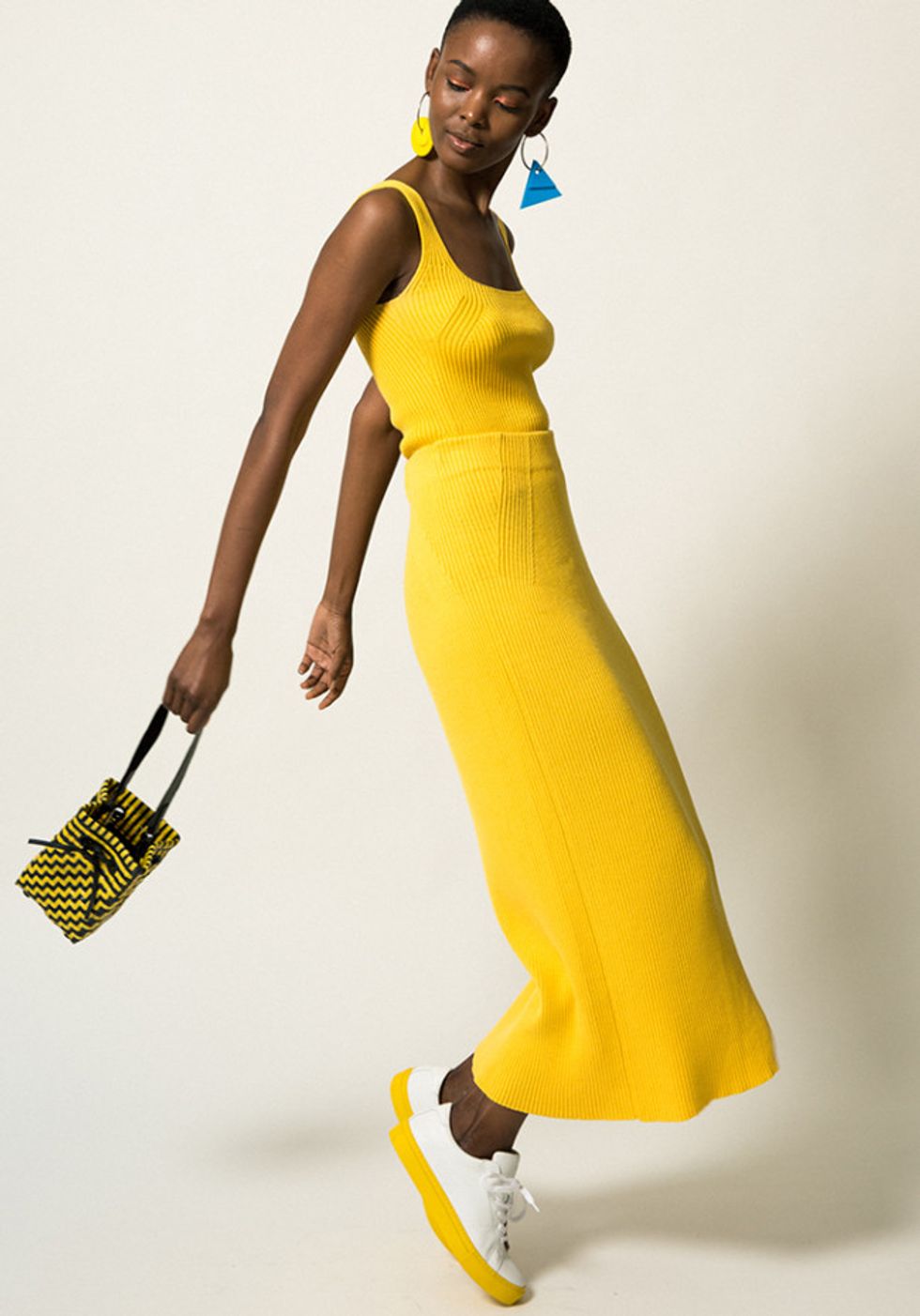 If you’re feeling doubtful about the effect of Gen Z yellow on the fashion and beauty industries, just take a look at your Instagram feed. Where millennial pink once dominated, now neon yellow, banana, and mustard shades abound. Even makeup artist Katie Jane Hughes inadvertently launched the “McDonalds makeup challenge” with dozens of followers recreating her unexpected red lip and yellow eyeshadow pairing that just…works. We consider it a reaction to the increasingly negative news cycle—it’s tough to shrivel into a hole of despair when you’re rocking an electric yellow pair of sneakers or a blindingly bright sundress. Even better if it’s at the same time. Where millennials themselves once acted as the last great hope for political change, Gen Z-ers are staking their claim as the new force for good. Optimism, in the form of canary yellow joggers or a sunny nail polish (specifically from our model, Flaviana Matata’s line LAVY) is here to stay.
