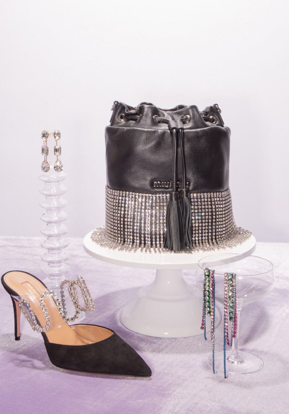 Our favorite dessert just happens to be Gucci. Can you blame us? Add a little shine to your hair with Jennifer Behr’s crystal barrette and some sparkle to your step with Loeffler Randall’s sequin mules. If you’re looking for even more bling, Alessandra Rich is our favorite go-to for some eye-catching ear candy.