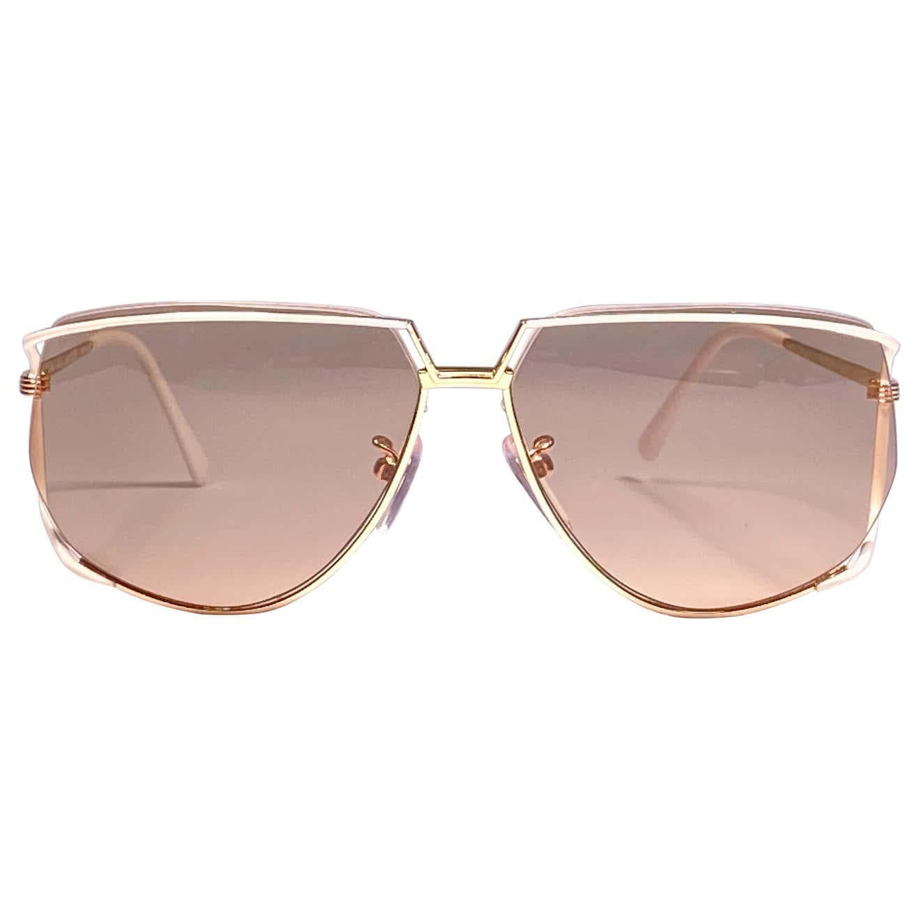 Ultra Rare 1970's Oversized Gold & White Light Lenses Sunglasses