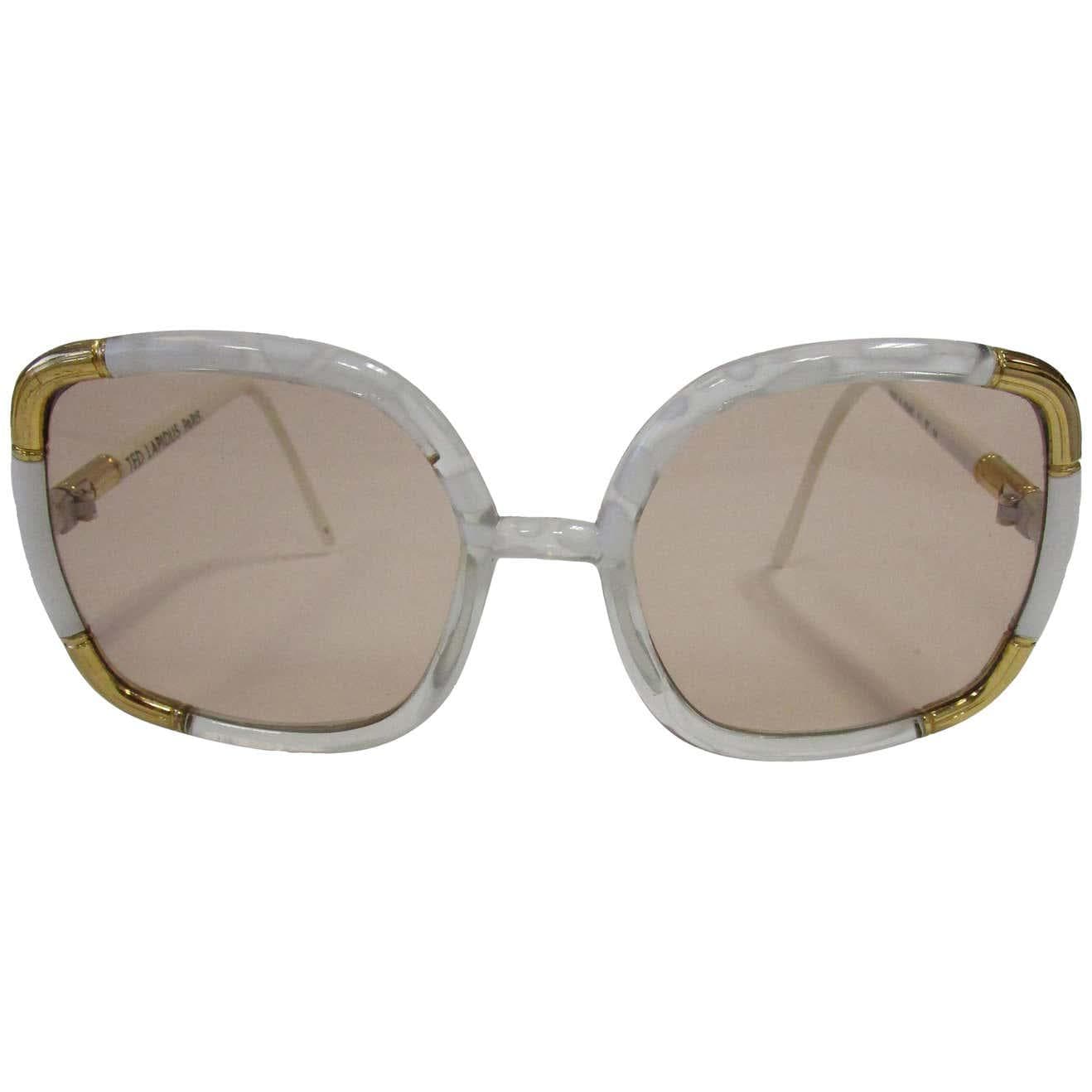 1970's Classic Paris Sunglasses White Marbled and Gold Hardware