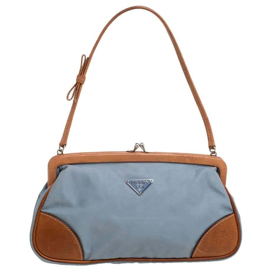 Blue/Brown Nylon and Leather Frame Pochette Bag