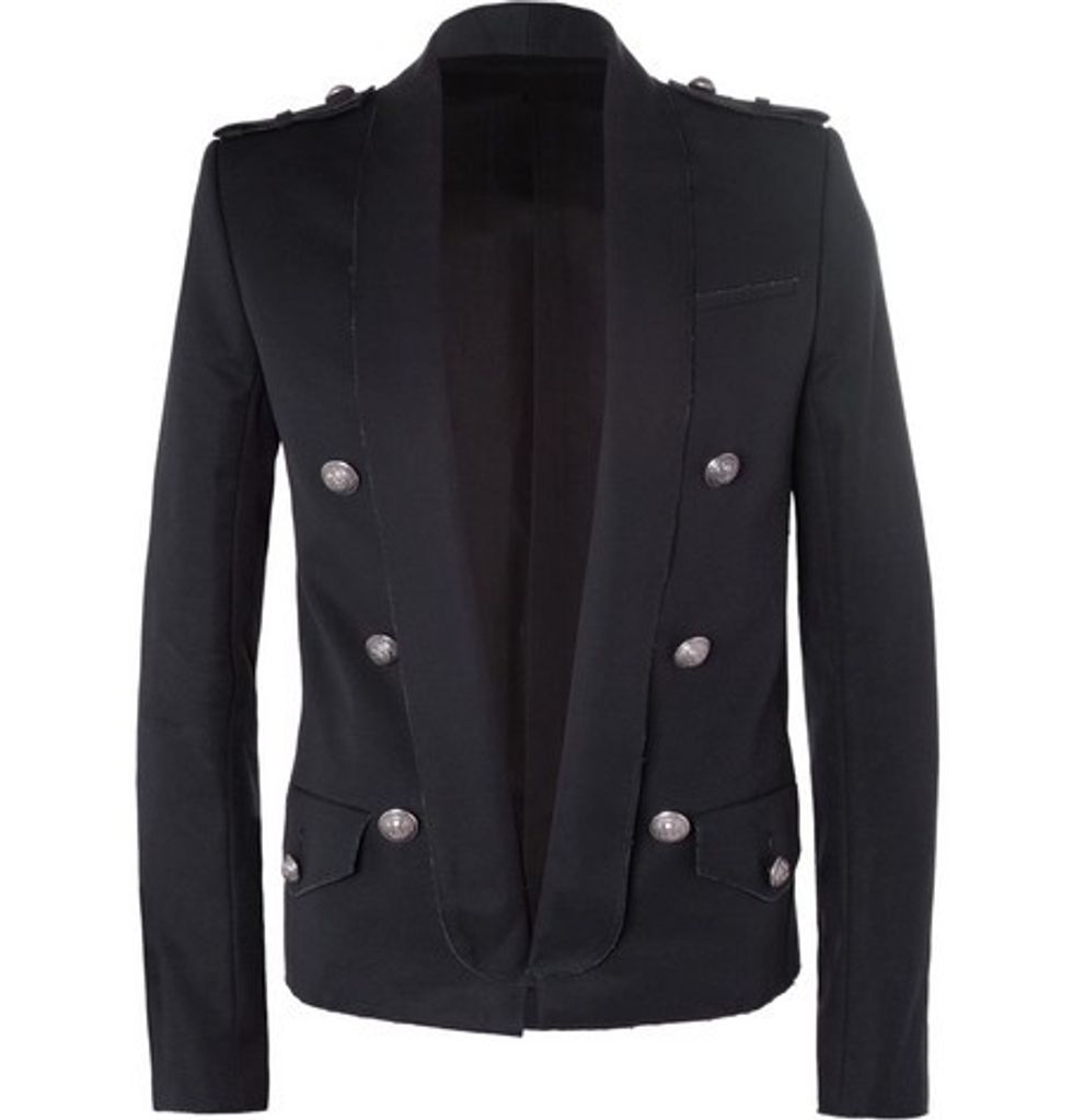And so? Here's a televisual sneak peek of that time we cozied up to his office over at Balmain's Parisian HQ, where he filled us in on just a few of his favorite things—namely, Miami Vice, his oversized speakers, and uh, gold. His office totally does have a few things in common with the headquarters of us mere mortals. Namely? Four little words: Special K cereal bars.