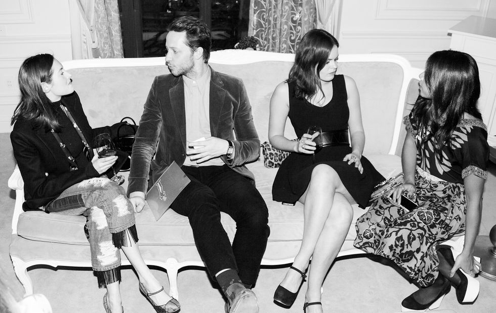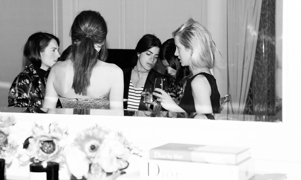 We tagged along and spent the afternoon with Reardin as she prepped for the night ahead and waited for her guests (a veritable who's-who of Cov-alums) to arrive. Clad in a signature, strapless Raf Simons-designed silhouette, we watched as she graciously greeted each and every one that walked through the suite's gilded doors: designer Amanda Assad Mounser and Derek Blasberg, with whom we discussed—what else—proper Instagram etiquette. Atlanta deCadenet arrived wearing head-to-toe Alaïa, followed by Taylor Tomasi-Hill, Hannah Bronfman and Leandra Medine; and, well, that's when the party really started. We chatted everything from our mutual obsession with a certain mysteriously missing flight (deCadenet described the CNN "k-hole" she found herself in), to our adventures at Paris Fashion Week before being ushered into the dining room.