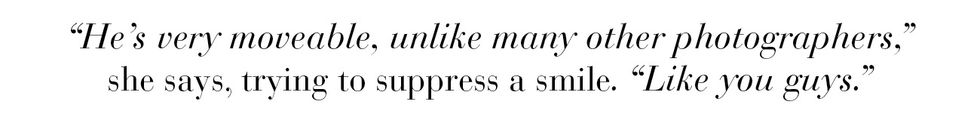 She’s flipping through his split-second snaps—one of a plaid-clad Linda Evangelista caught in an impromptu high kick, and another of a Stella Tennant mid-swan dive into a pool, fully-clothed in wool tweeds (insert collective PR rep cringe here).