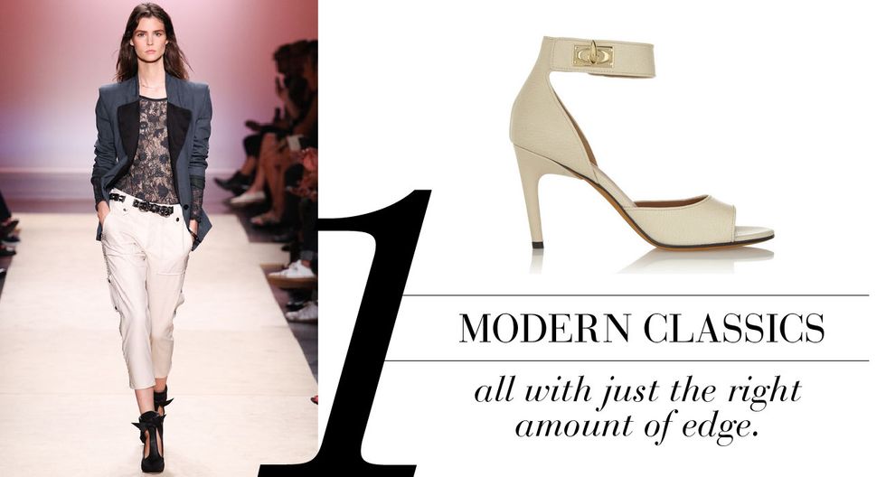Okay, scratch that—we’ve all been there (we may have had a boss who referred to our Valentino Rockstuds as “weapon shoes”. But that’s neither here nor there). Needless to say, whenever the trend coincides with the office-appropriate, we all breathe a little sigh of relief. Enter the modern classics: sensible heels, floaty crepe pants and satin blazers, all with just the right amount of edge. Just think of it as ladylike, hold the tea sandwiches.