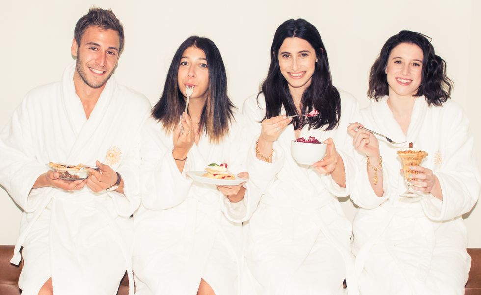 While we digress, we figured if anyone could feel us on the whole food front, it would be the girls behind The New Potato—Laura and Danielle Kosann—which you may know better as the fashion industry's favorite food blog. And so when the girls first approached us to collab, (because, well, it was just right, right?) we thought it was only appropriate that we give a nod to our most faithful standby whilst on the road: room service. And so while crashing at the newly-opened Viceroy Hotel, we invited the girls over for some in-room dining—with a side of Olympia Le-Tan and Pierre Hardy, because, well, duh.