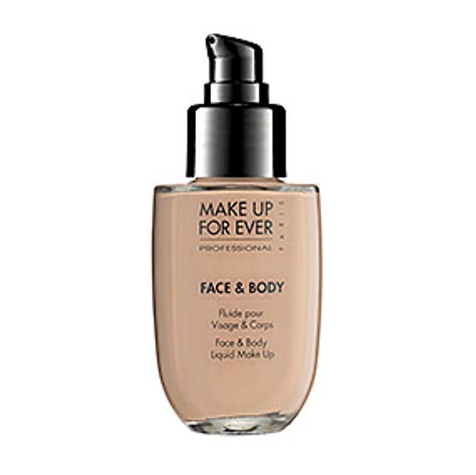“Start with clean skin. Apply deodorant first, then apply lotion only where you really need it (heels, elbows, face). Before applying any body makeup, get dressed! But leave shoes and jewelry ‘til last. Protect your clothes by tucking kleenex along the edges until you've finished applying. Throw a towel on the floor for any drips. Start at your feet and work your way up—this will help to avoid smearing on your clothes. Go slightly further up the leg than what's exposed. Don't forget the backs of your hands! Blend the makeup in well, in good light, and remove excess with a clean, damp makeup sponge. Lastly, set the makeup with a light dusting of translucent powder (apply to inner arms to reduce transferring). For a slimming effect use a highlighting powder over the shoulders, collarbones, and down the front of your arms and legs. Always do a trial run before you plan to wear body makeup! Stand back and check yourself out in the mirror. If you know you're going to be photographed, a selfie wouldn't hurt!”