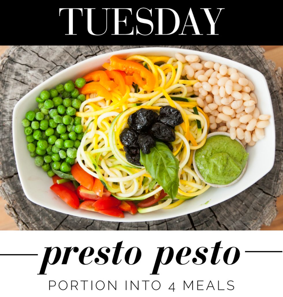 2 large yellow or green zucchinis, spiralize into noodles