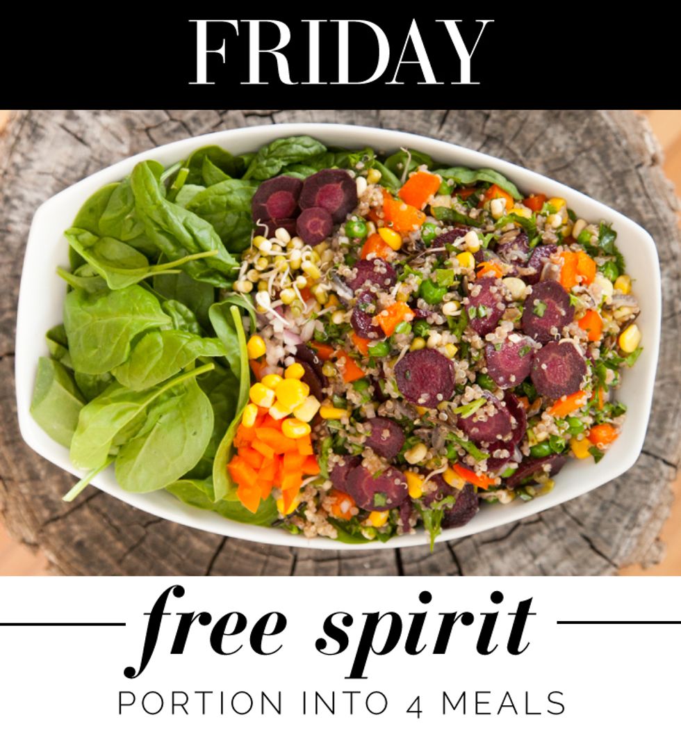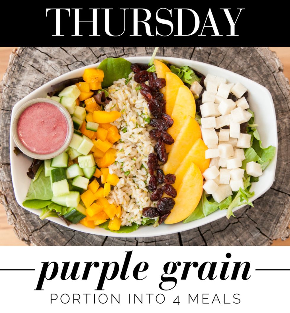 “These recipes have been put together to make super clean lunching easy. Ideal to prepare at the start of the workweek, each recipe below will make enough for four meals or four very convenient lunches Monday through Thursday. Think about rallying a few office mates and each taking a turn making lunch for the group.
