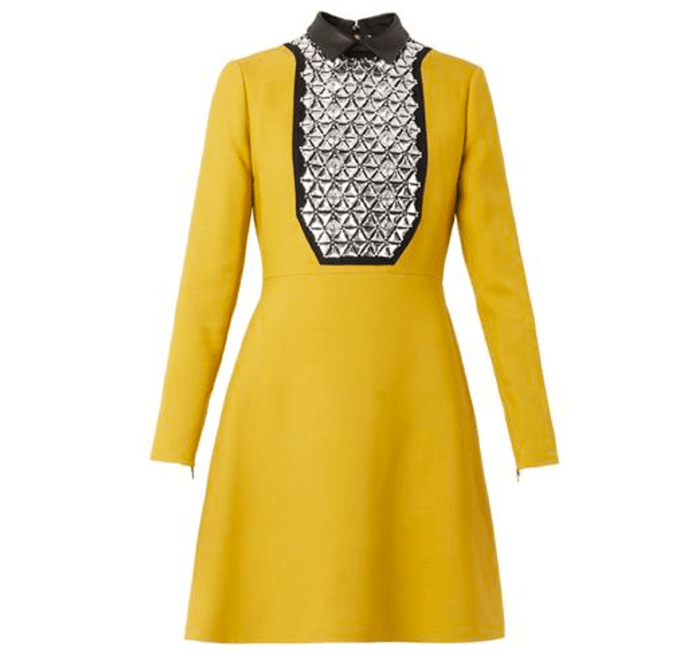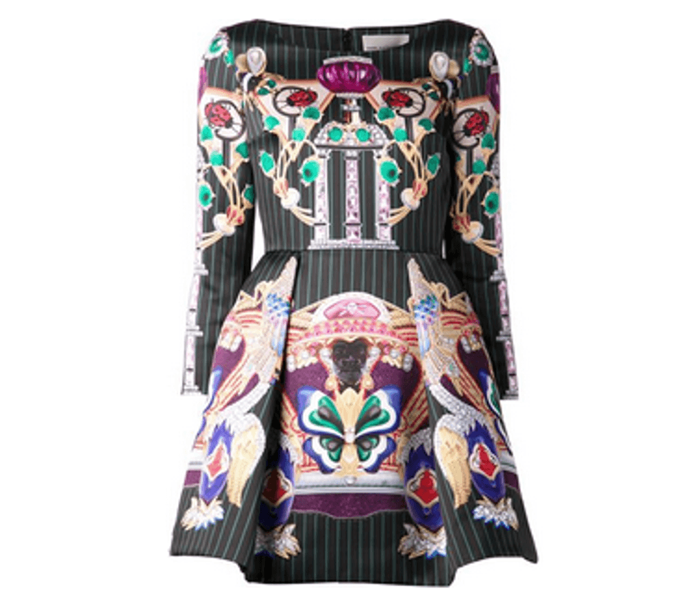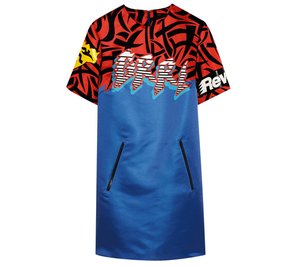 This season, it’s bye-bye body con and hello third cupcake. And by that we mean dresses that play more on shape, pattern and volume than on showcasing the exact diameter of your waist. Elicit double takes in ComicCon-print shifts, saturated primary colors, super-sized structural details and 3D embellishments.