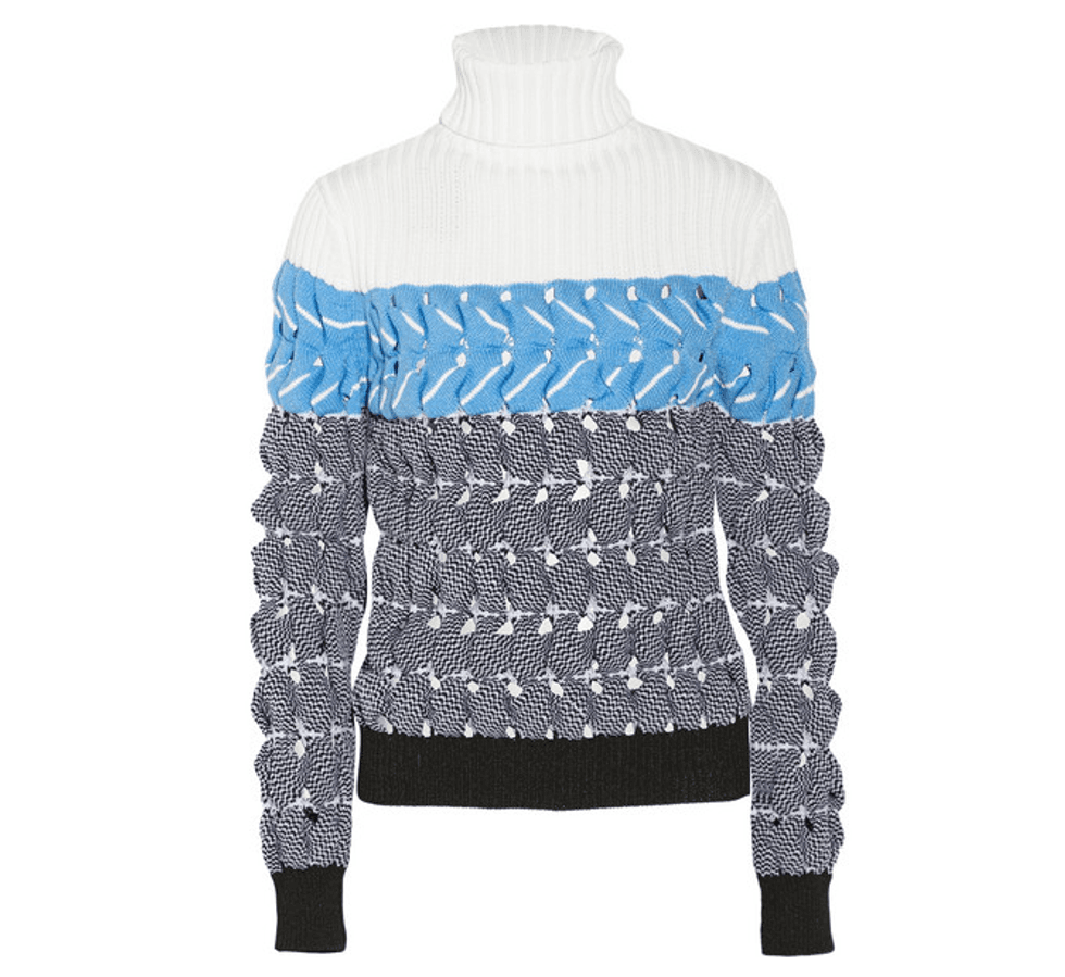 We can’t be the only ones thanking our lucky Starbucks that it’s socially (and street-stylistically) acceptable to sport elevated sweatshirts this season. Opt for chunky turtleneck sweaters, elegant origami-esque drapery, and unexpected weaves, like the sure-to-be-Face-Hunted Alexander Wang bubble-wrap knit we’re itching to sink our fingers into.