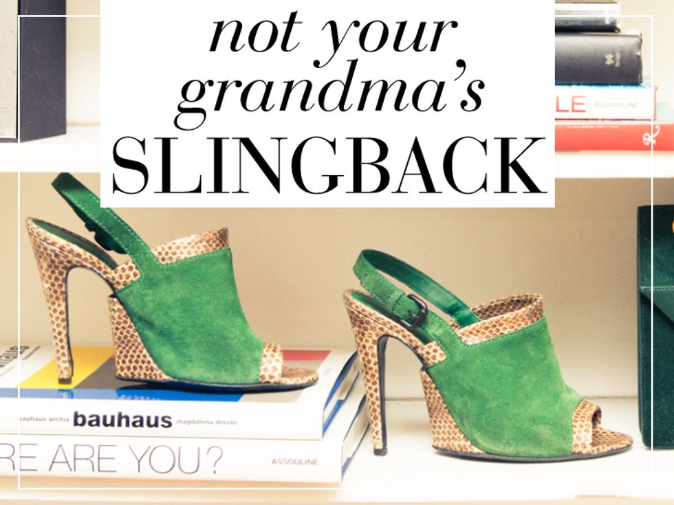 Not that they aren’t wholly rocked by the septuagenarian set, but slingbacks have traditionally been, well, on the kitten-heel-and-multi-strand-pearls page in our books. You see, practicality usually takes a backseat to teetering in toothpick heels and backing out of backless mules (it’s a whole form-over-function thing—we’re seeing someone about it), and slingbacks, with their strapped-in sensibility, seemed a little too prim and proper for our liking. But that’s until Sophia Webster’s Angelo cut-outs descended from heaven. It’s like we always say: if you like it then you shoulda put a wing on it.