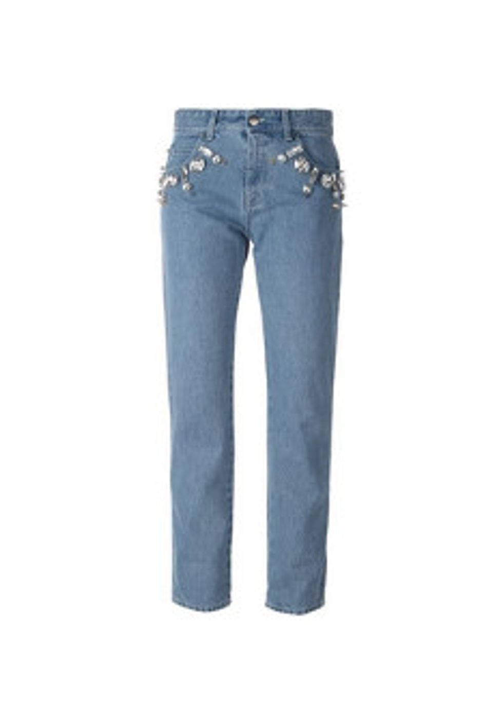EMBELLISHED DENIMPreviously relegated to the Disney Channel costume department and Rihanna’s legs, embellished denim is back with a studded, baubled, shredded vengeance. When we spotted the jean version of those don’t-even-get-us-started bejeweled Dolce & Gabbana headphones, we were instant converts. Don’t be fooled by the rocks that we got [on our pants].