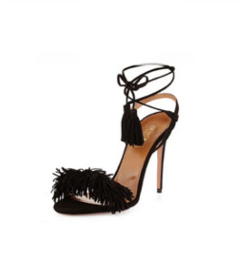 Take it from those of us who’ve shed half a kimono after a particularly enthusiastic shimmy—if you’re going to do fringe, do it right. Cheap out and you’ll end up leaving your mark with a breadcrumb trail of tiny strands. Suffice to say, we’ve taken to a more, er, fanciful fringe in the form of Proenza leather and Aquazarra suede. Just beware the escalator.