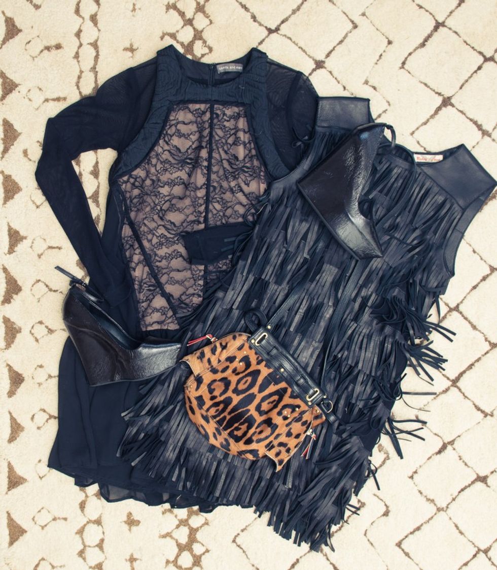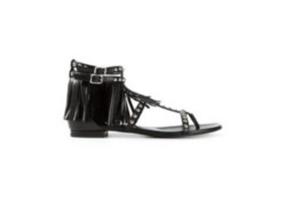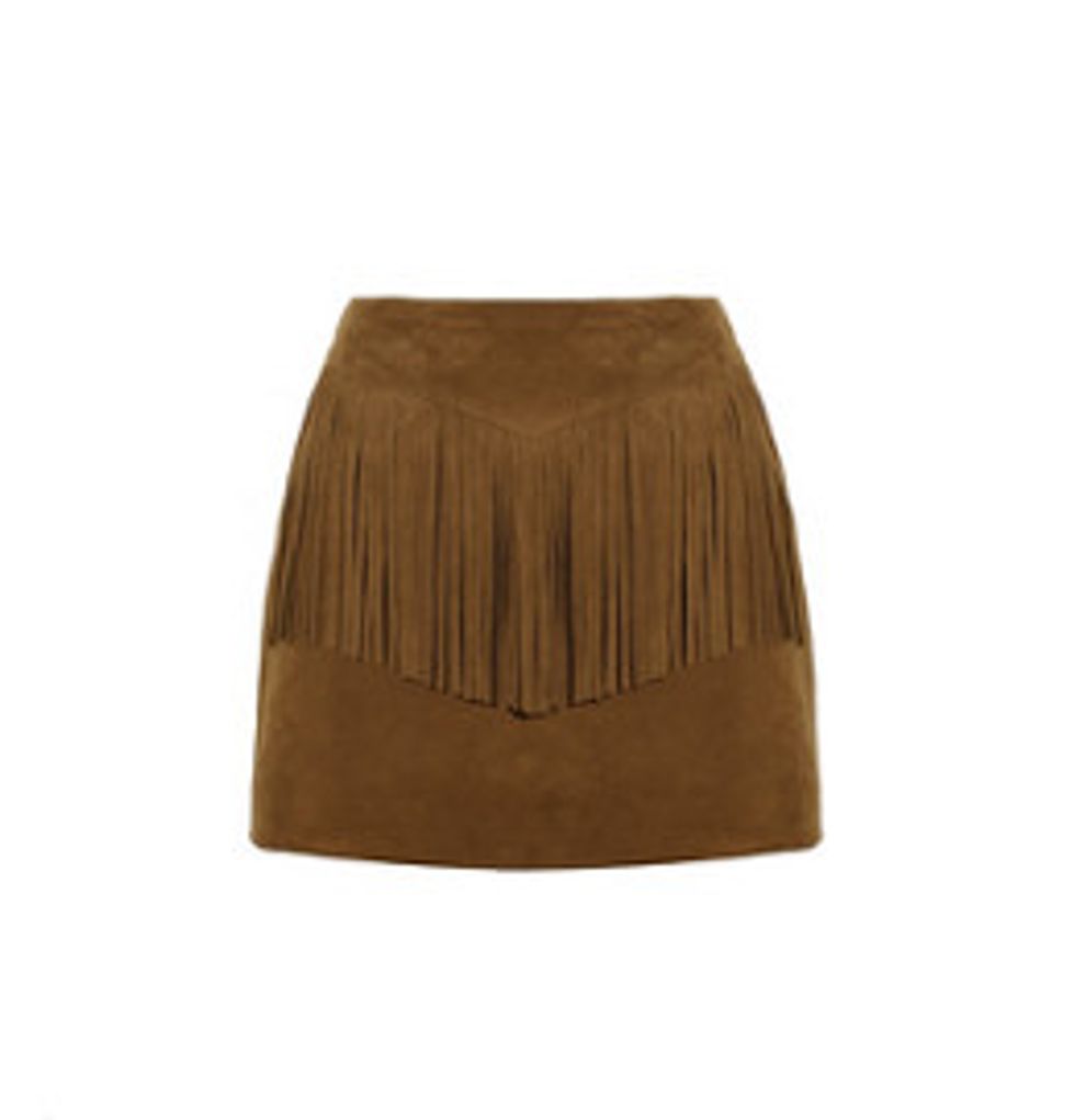 Case in point—fringe. Since the longtime festival favorite permeated our day-to-day wardrobes in the form of shredded suede and tassels dangling off kimono sleeves, we’ve been fiending for fringe in less-expected places: think decorating jean seams, cascading in thick tiers down a maxi skirt, or wrapped around ankle-strap heels (subway grate tangle fiascos notwithstanding). But there’s a fine line between fringe benefits and full-on Annie Oakley.