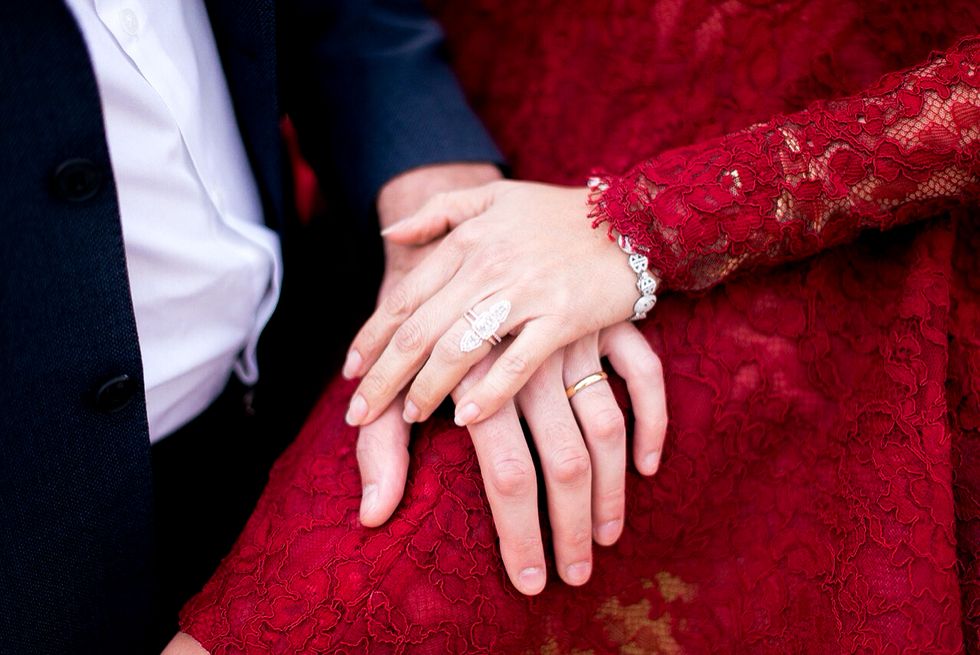 “[My engagement] was a total surprise. We were together for five years and never ONCE spoke about marriage. We were on vacation in Greece and he took me to watch the sunset and then asked me to get out of the car to take a picture. He told me how much fun he has with me and asked if I would keep having fun with him the rest of our lives. I couldn’t breathe and asked about 30 times ‘OMG what is this? What is happening?’ Mike designed the ring with Lorraine Schwartz. We were in Paris for a friend’s wedding and we were at lunch and talked about how neither of us wanted a big wedding. So we decided there and then we should elope and do it in Paris, where we had our first kiss. My good friend Fajer Alrajaan lives in Paris and helped us get our flowers and photographer. I wore a red Rami Kadi dress that I had and Mike wore a Burberry suit. [For our honeymoon] we went to the Maldives for a week—the best place in the world to unwind! I wouldn’t have changed one thing. It was the most romantic moment I will ever have in my whole life. Just me and my husband crying and exchanging vows in Luxembourg Gardens.” - Jen Atkin