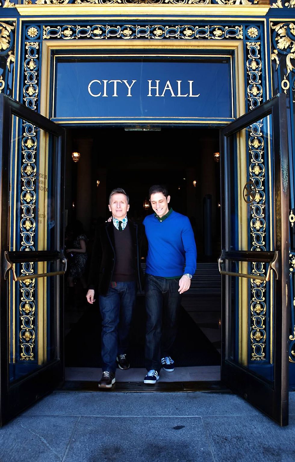 “There was no proposal. It was more like, ‘Hey, we should get hitched when we are in San Francisco next, because now we can ‘cause now it’s legal. Then, if one of us gets hit by a bus, the other one won’t have to sell everything in order to pay estate taxes.’ #notveryromantic. We have been together for decades so it was all super-casual. It was 2009. I think. We can never remember. Not long after we married Prop 8 was upheld, which meant our marriage was not legal. But then it was made legal again a few years later. Color us confused. We made sure not to plan anything. It was insanely informal. In the morning we went to SF City Hall with Jonny’s mum and sister and waited in line with hundreds of groovy lesbians, who thought Jonny’s mum and sister were a May to December lesbian couple. We then went back to the Clift Hotel where a Rabbi performed a short ceremony and the four of us enjoyed a cake. Then we went to Jonny’s store to do a bit of re-merchandizing, and then to Barneys SF to say high to Irene Neuwirth, who was doing a jewelry PA. In the evening, we went to Chez Panisse and Alice Waters treated us to dinner. We wore what we had on. Jonny had a J.Crew blue sweater and I wore a flowery shirt plus an old Thom Browne velvet jacket with a ripped lining. #fauxhemian. [Our honeymoon] was the best part. We went to Big Sur and stayed at the Post Ranch Inn with Jonny’s folks and Isabel and Ruben Toledo and Ariel Levy and Amy Norquist. Our wedding was perfect. No pressure. No sweat. Tons of chuckles. No mishegas. It was the ultimate groovy non-wedding.” - Simon Doonan