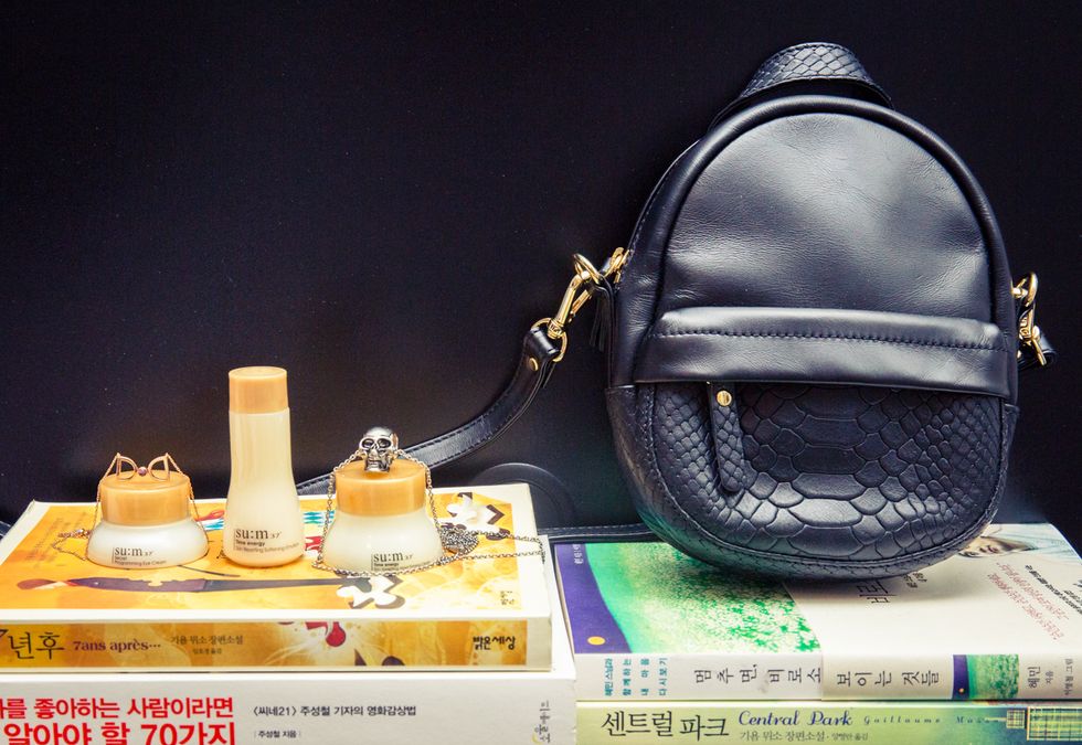 "If you look inside my bag, there are only skin care products, including BB cream and maybe a mineral powder. Some of my favorites include the IOPE Air-Cushion (#1 in Korea!) and the Innisfree No Sebum Mineral Pact."