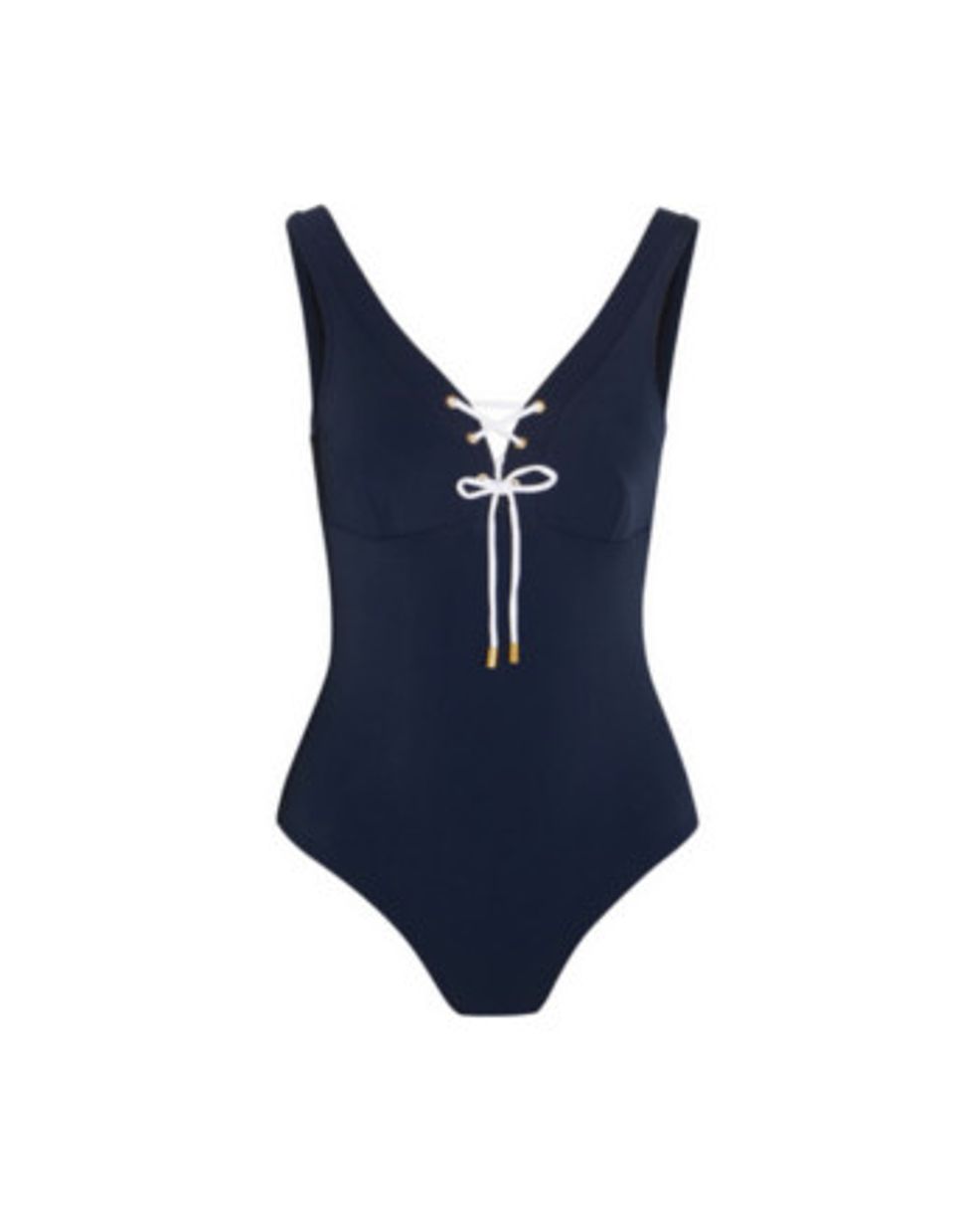 This is likely the most sage piece of advice that's about to come your way on the summer packing front (aside from the classic roll, don't fold), so listen up: when you find a good swimsuit, hold it tight and don't ever let it go. Norma Kamali's renowned for doing the damn thing on the one-piece front for a reason, while this nautically-tinged halterneck bikini offers slightly more secure coverage. That, and stripes and bathers usually make for a happy-making equation. Take your pick.