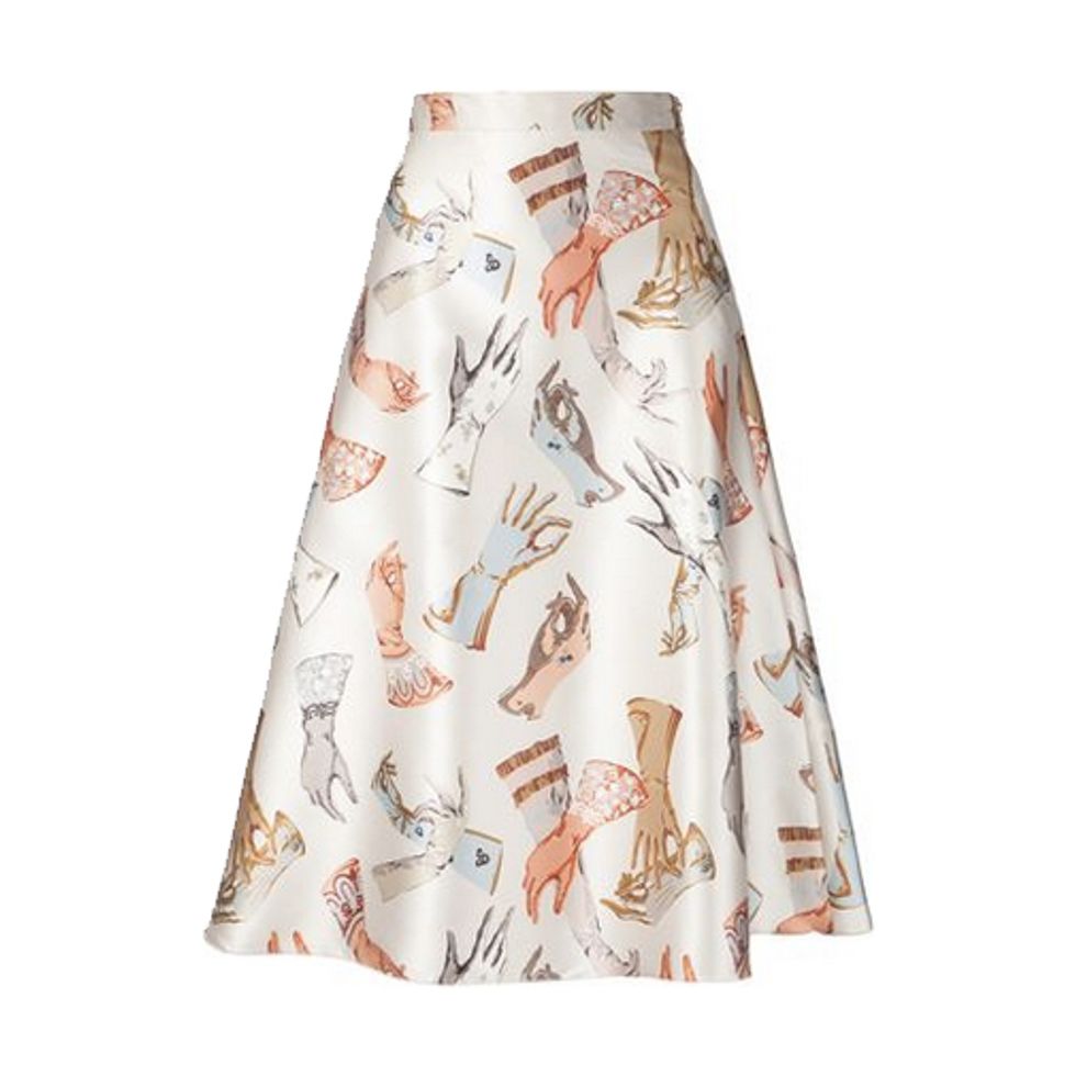 “One can never have enough white blouses; the high neckline and buttons on this Rosie Assoulin update the classic white blouse making this a must have! This season Adam Lippes collaborated with one of my favorite NY based florist’s Putman & Putman on exquisite print that is both poetic and beautiful without feeling too precious. I am obsessed with this CVC Stones collection! I have already accumulated a few necklaces and each piece is so special--the beautiful polished one of a kind stones remind me of childhood memories of my siblings and I collecting stones by the sea from our family travels each summer. We were always so excited to come home and share what we found; now my girlfriend’s and I compare our necklaces! The combination of a happy floral print and easy silhouette make this Valentino a perfect fall wardrobe update. Maria Grazia Chiuri and Pierpaolo Piccioli are true masters, I recently had the opportunity to travel to Rome to see their couture show and I was absolutely mesmerized, not only by the exquisite clothing but also by the magical city—I always feel like a Roman empress in their pieces! Alber Elbaz’s playful spirit is always apparent in his collections for Lanvin and this clutch is no exception! The strong leopard print and clean, modern shape make it very easy to incorporate into any wardrobe without ever being vulgar.”