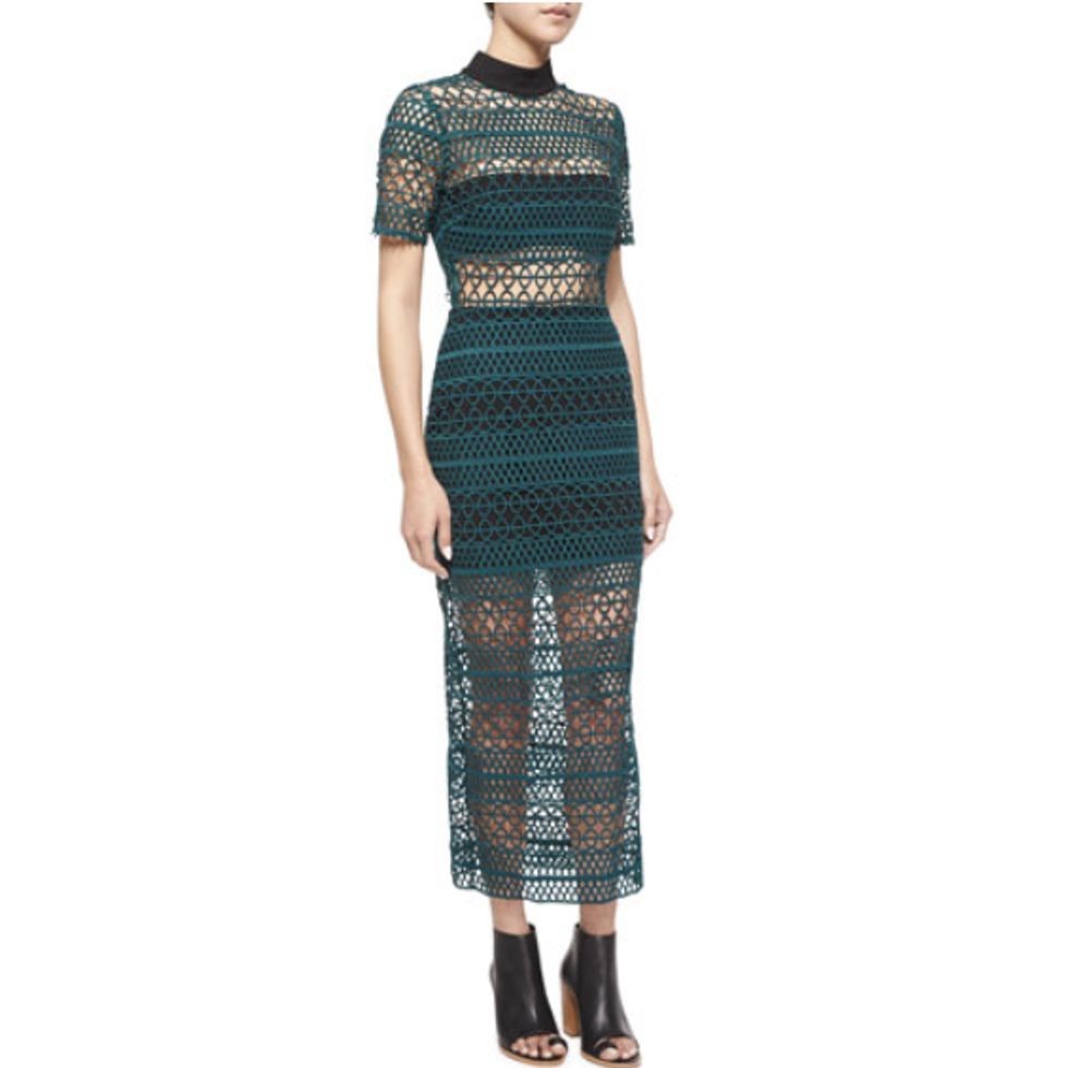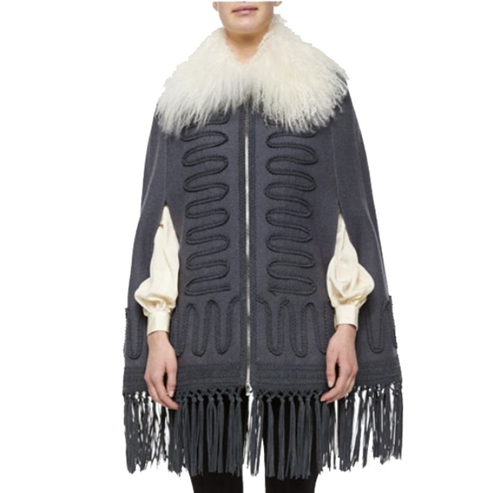 “We love this nomadic looking shearling from Chloé—perfect for our customers who are world travelers. This sharply tailored double breasted jacket from Balmain is smart enough to head to work during the day but cool enough to throw on over your little dress or jeans at night. Fringe gets all dressed up with Andrew Gn’s soutache trimmed cape with suede fringe and Mongolian lamb collar. These Self Portrait lace dresses are such a staple item right now. They're perfect to dress up with heels or down with a cute pair of oxfords and are timeless! Stay warm this winter in this luxe fur lined army coat by Yves Salomon.”