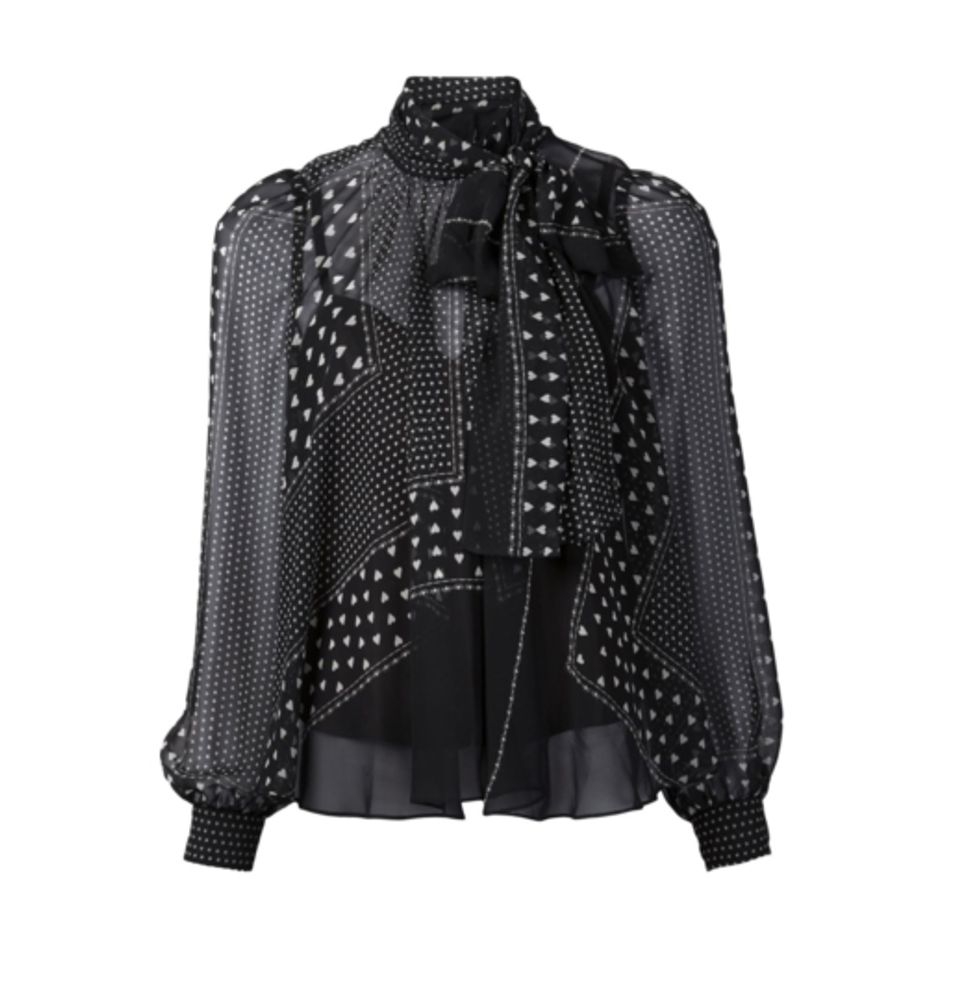 “Chloé’s cape coats are perfect to get a headstart into the new season. The cape brings the summer boho festival feeling forward for fall! Saint Laurent’s Paris booties are the ideal mood balance: a hint of western yet stiletto sexy. We all adore flared and frayed denim! Add a shrunken boy-blazer for seventies silhouette. Dolce’s jewelbox bags are heirloom worthy. The special evening bags for the season go above and beyond the basic. Step up! Obsessed with this future iconic print. We love a whimsical floral. Sacai’s subversive blouses add a quirky-intelligent vibe to your classic wardrobe staples.”