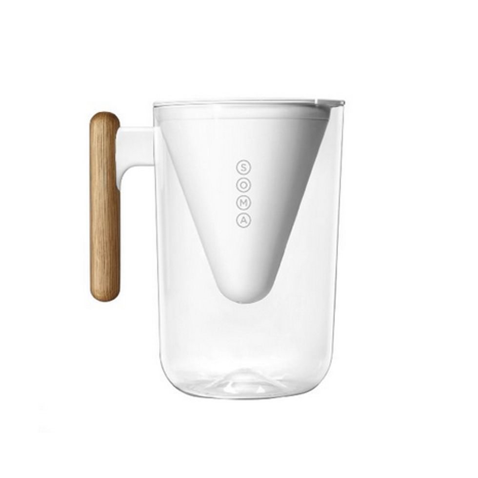 “I drink Soma-filtered water with yummy stuff in it—herbs, cucumber, citrus. I drink tons more when it’s flavored. [My coffee order is] nothing all that fancy—regular coffee with nut milk and a little stevia. [In the morning] I either meditate or drink coffee. I’m the kind of person who goes to bed dreaming about my morning cup of coffee. What should you do? Drink a big glass of water to rehydrate.