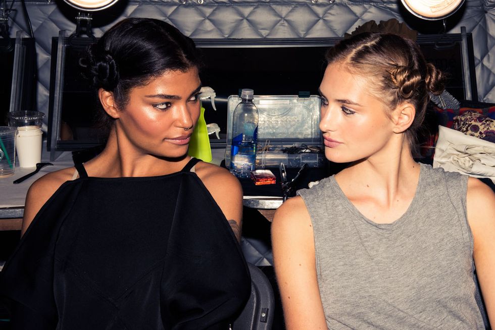 If Snapchat, Instagram, Periscope and whatever other instantaneous app-of-the-moment hasn't tipped you off yet, Fashion Month is upon us, and with it comes a deluge of beauty looks to attempt to copy at home. And if we learned anything at BCBG's Moynihan Station show from our perch backstage with hair god Orlando Pita and TRESemmé, it's that hat hair is more than just okay—when seen through the brand's SoCal lens, it's actually pretty damn cool. As Lubov Azria told us, "our girl is a tomboy at heart, who unashamedly wears what she wants to wear," and for Pita, that means "rough, lived-in, modern beach waves". Bristle brush and ubiquitous hairspray in hand, he explained, “I wanted the effortless cool of our girl to be reflected with a distressed, wet-look wave that accentuates the hair's natural texture. I love mimicking that moment when her hair starts to dry after a day by the water". If we actually learned how to surf, that could totally be us, you guys! And besides, there's no better cure for hangover hair than your boyfriend's bucket hat. Copy the (actually easy, promise) steps below, plunk one on and you're out the door.