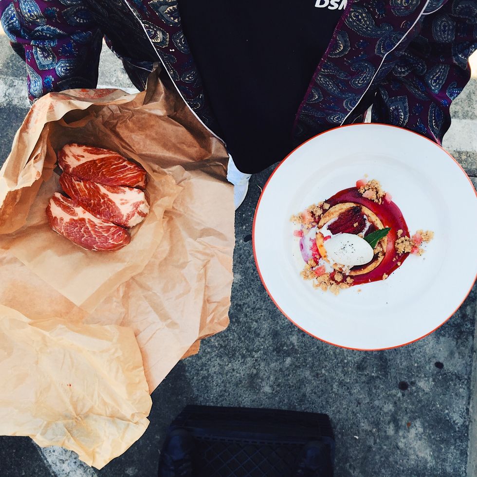 Pistola really has a great thing going. Beautiful interior, incredible design, talented chef in the kitchen. Killing it on all levels. There’s such a sophisticated vibe, it’s like a dramatic Rihanna video. Whenever I’m in LA from now on I’m only talking meetings at the very top floor on the back patio #WAYUP. I got some very rare new garms from the H&M showroom the other day. These flowy black trousers, a lightweight turtleneck, which will be all the rage real, real soon, and an epic lightweight overcoat with the rarest of hem lines. Can we stop and think about this dope look? It’s a monotone grey banger. I’ll be like a manta ray swooping into your proverbial DMs. Just call me the god damn Dark Knight, fam. I’ll be poised at my table with shades like Johnny Depp in Black Mass eating a steak at all times. Let’s build over steak and dope fits, fam.
