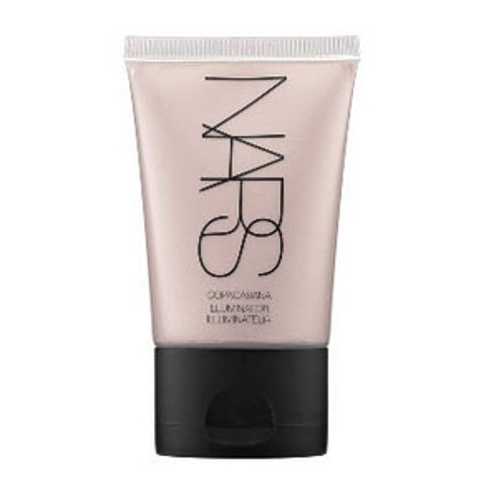 “Bobbi Brown Weightless Powder for the face, NARS Copacabana highlighter for the cheek bones”