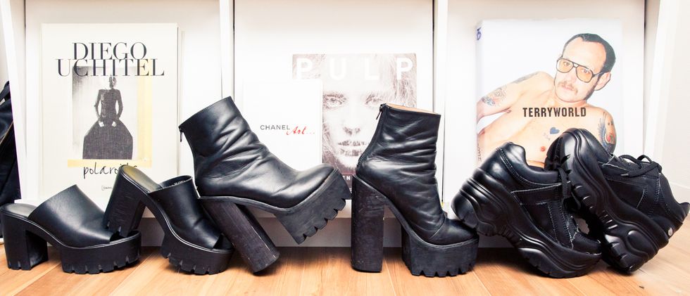 Logically, by this point, you should own 12 military jackets in various shades of olive. But we're about to make your wardrobe that much more badass—think chunky high-top boots in glossy black, tiny backpacks pierced with heavy metals, and leather goods that get better with age. Soldier on.