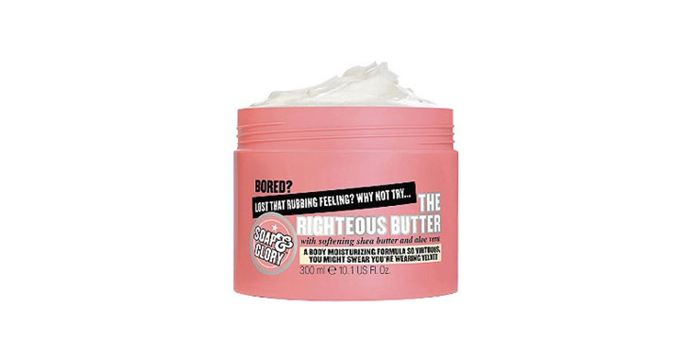 Dry is a wintery theme—skin, hair, air, primetime television—but none more so than those wayward patches of skin on your thighs and the backs of your arms that are all of a sudden scalier than the whole grilled fish at Pearl Oyster Bar. The solution: a thick, buttery cream à la Soap and Glory’s The Righteous Butter. Apply in the shower for skin as velvety as a Juicy Couture tracksuit.