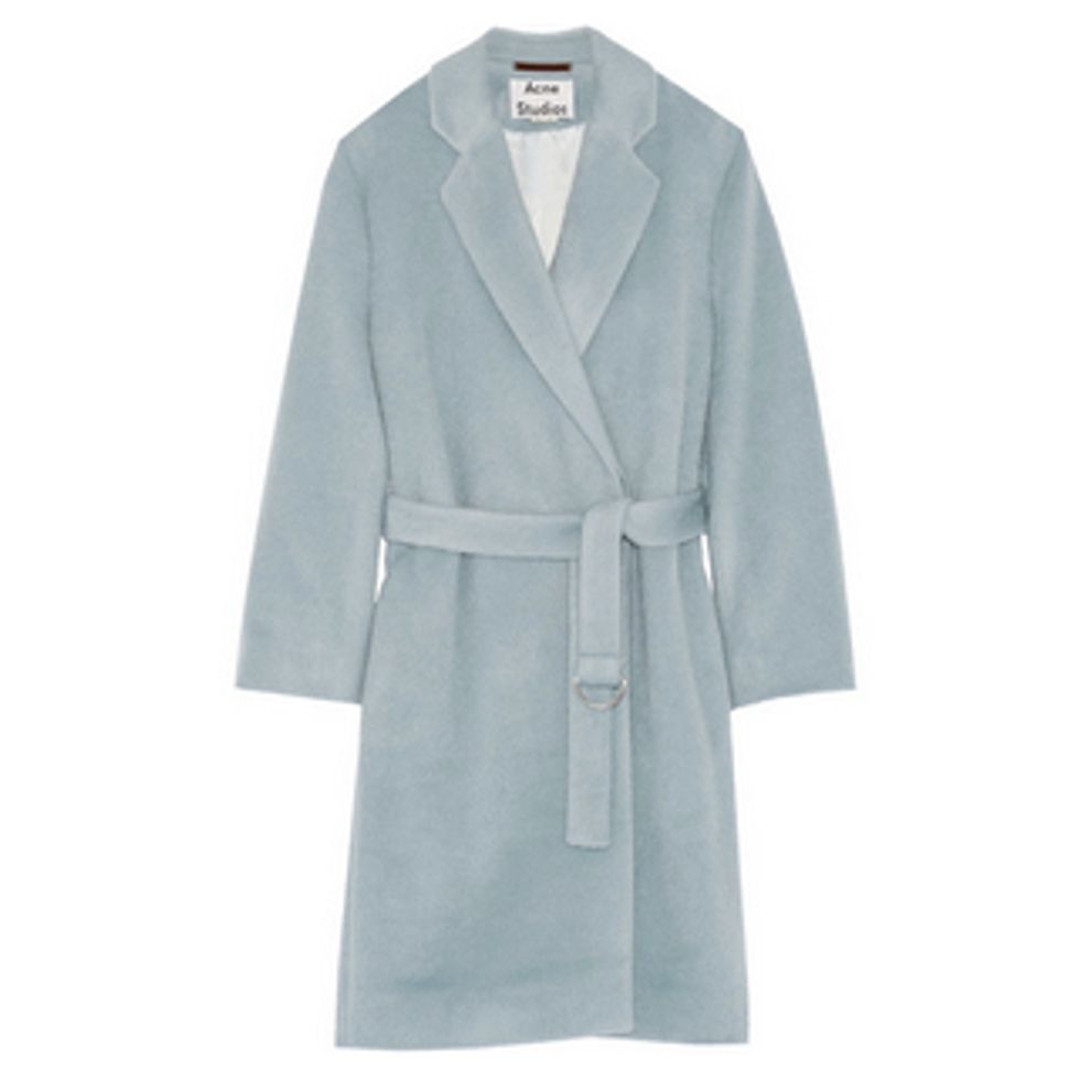 I could fill my closet with only winter coats and be totally satisfied with the state of my wardrobe. But I swear if I had this Acne one, I would be satisfied. And I've been wearing a fur pom-pom hat since forever, but now that they're trending, I guess I should diversify and get one with some blue in it. The dove-gray Isabel Marant boots? They might not hold up in the snow, but as far as I'm concerned, they're perfect.