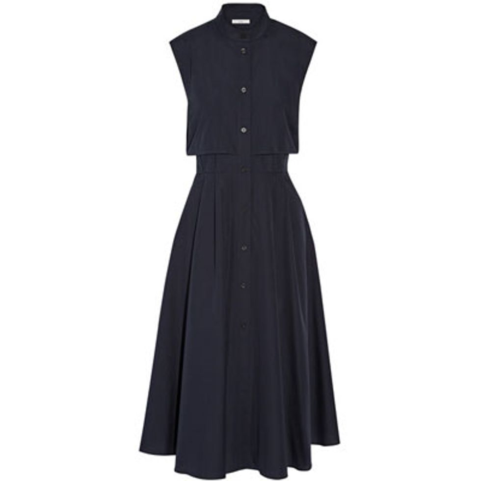 The first thing to know is that my parents live on a sailboat and spend their time floating around in tropical locales. So, when I have some time to get away, especially when the mercury dips up here in the north, I make it my business to visit them wherever they happened to be anchored (I know, I know, it's so hard to have your parents move away). Our next reunion is happening in Barbados—and if my mother's email updates are any indication, we're spending a champagne brunch or two at some hotels that are straight out of James Bond circa Sean Connery. My outfits on these visits typically range between sun-bleached bikini and Bali-sourced wraps, but considering a dress code is in effect, I might as well go all out nautical classic-cum-Jackie O: a navy blue shirt dress, XXL shades and some very non-seaworthy sandals.