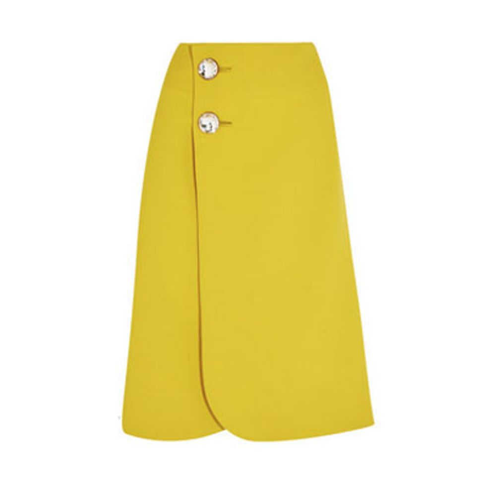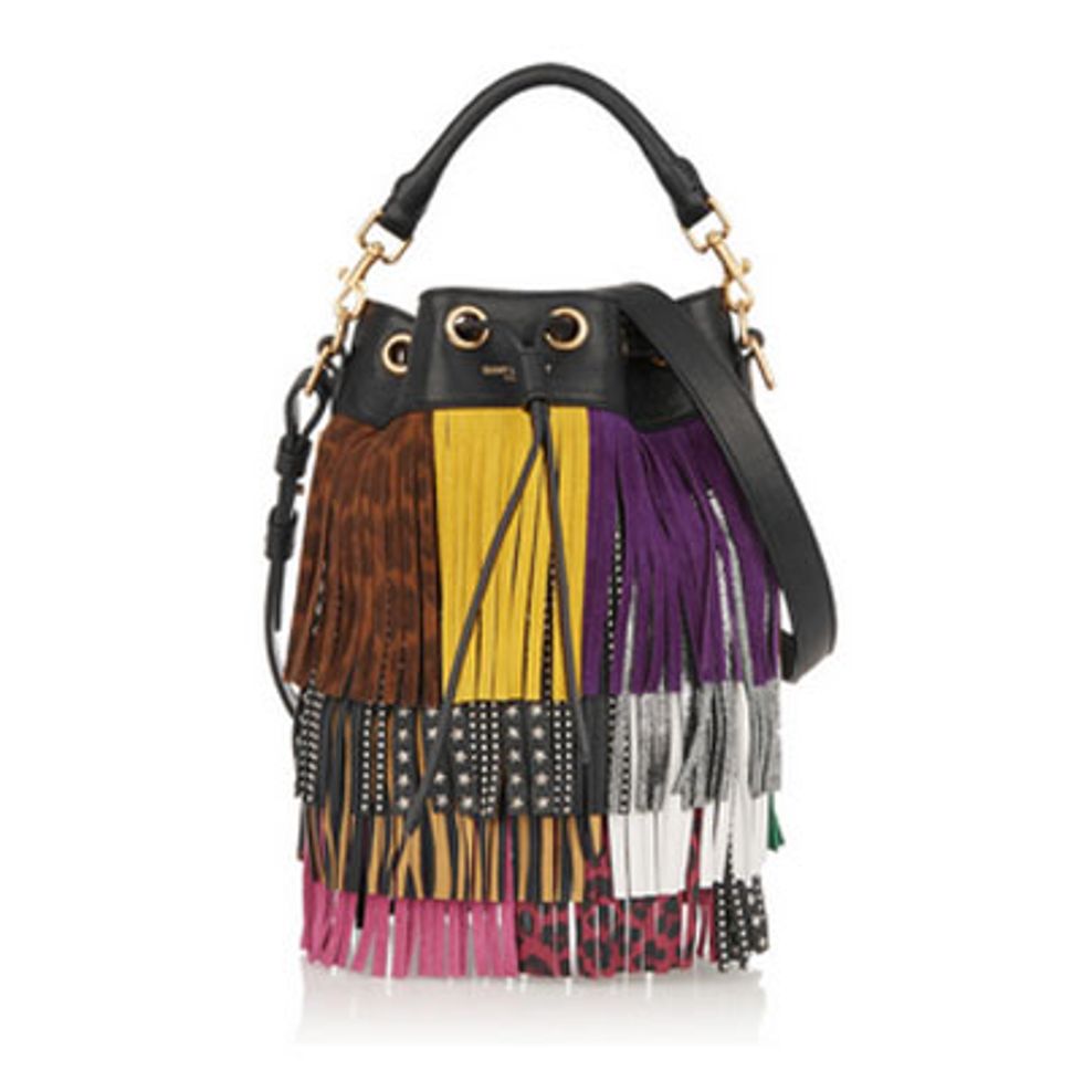 My winter uniform is well established and looks a lot like a black turtleneck—close to daily. It works, but it gets a little bland after some time. So as much as I'm craving the Miami sun, I'm also very much in need of a color injection—as much and myriad as possible. Hence the marigold Marni skirt; the fringed Saint Laurent bag; and the chunky Giamba platforms—the sartorial version of the Skittle rainbow.