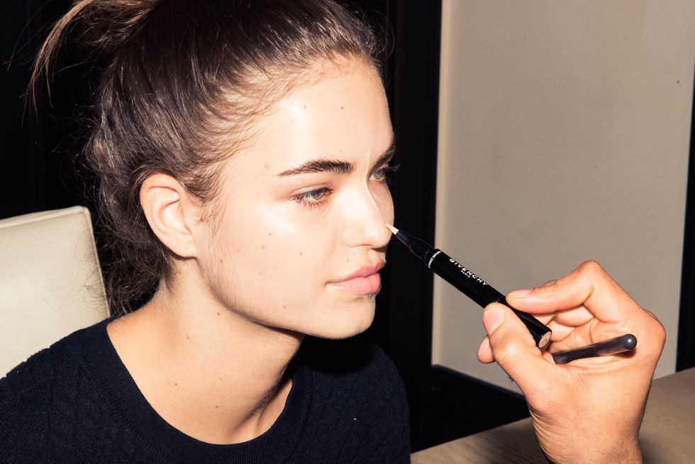 We’re guessing that by this point, if you so much as follow a Kardashian on Instagram, you’ve heard of strobing, which, as the makeup artist tells us, is pretty much the same as highlighting—like contouring but without the scary war paint-like before picture. It’s that healthy, glowy, no-makeup makeup look you’ve seen on every other runway and Calvin Klein campaign—a.k.a. the perfect effortless, non-basic New Year’s Eve look (how handy!). “This isn’t so much of a ‘look,’ as it is a staple,” Sir John declared. In that case, we’d better get to learning.