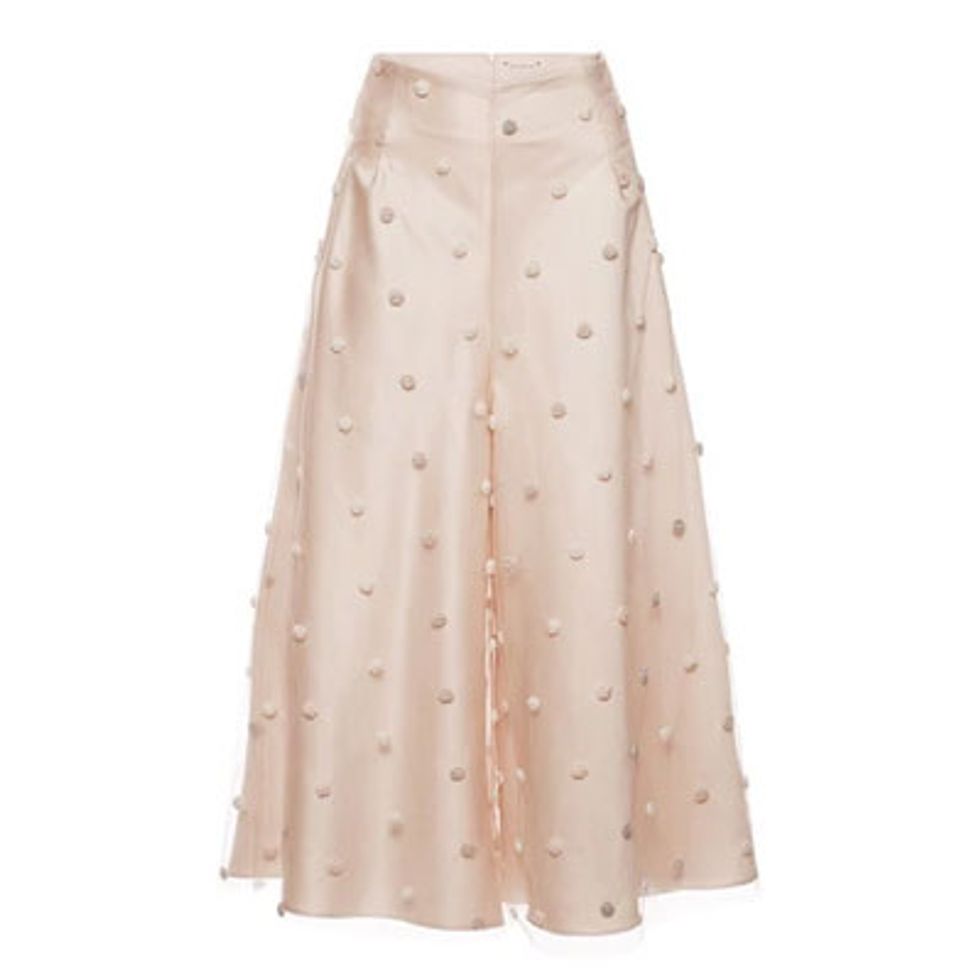 My Valentine's Day picks start with a pair of polka dot embroidered culottes, because nothing really screams 'date night' quite like baby pink Michelin Man pants. Second, the result of the geeeeenius Olympia Le-Tan x Diptyque collaboration: this candle, which, upon lighting it up, has hints of leather (!) and roses (!!). Finally, white suede pumps that are really just ballet flats with a block heel. Nonetheless, I'm into them.