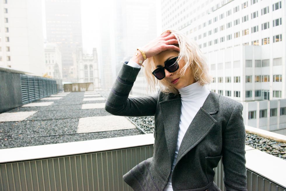 “While getting dressed, I tear apart my closet and whine about never having anything to wear. It also depends on my mood but I at least always text my best friend Emma Morrison for outfit approval. I almost always end up in my black super-high-rise stovepipe Imogene & Willie jeans, Vans sk8 sneakers or a Saint Laurent chelsea boot, a vintage tee and my favorite black leather jacket by The/End. Side note: this jacket has the best pockets so you never need a bag, which is my biggest annoyance when I just want to grab a cocktail and dance with my friends.”