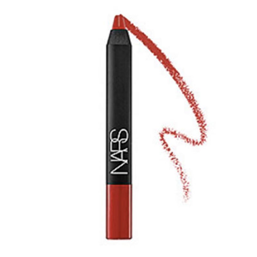 “Lipstick. I always wear lipstick when I go out. I use Nars matte lip pencils as they're so easy to apply and stay on so well. I have a range of colors, including Dragon Girl, which is a brighter pinky red, Mysterious Red, which is a more red red, and Damned, which is a deeper-purple tiny berry color. I stopped wearing mascara a few months ago and I love it. Sometimes I use eyeliner to paint on a tiny flick at the outer corner of my eyes, only really subtly though. I also recently started to use a brownish cream eyeshadow from Milk's new makeup brand, which I smudge on my lids roughly. It gives nice definition!”