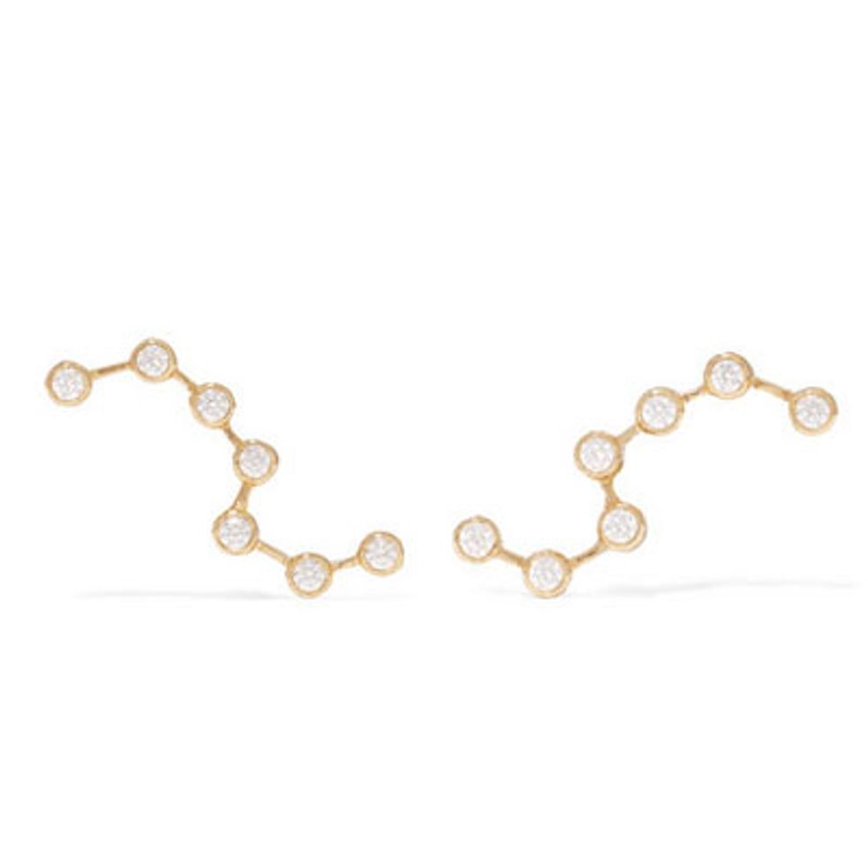 So incase you couldn’t tell, winter in New York City literally just made an Irish exit. Which is the best news ever. In it's place, lighter coats, bare legs, and the return of the flat. This Jacquemus dress is the epitome of transition dressing, navy wool makes up the majority of the fabric but then there's a white linen panel just hanging in the front (hello March). These sleek white Martiniano pumps are a welcome reprieve for feet that have been stuck in socks and black leather for too many months. And a delicate constellation earring situation, which works well anytime of year. Just add al fresco happy hours and springtime becomes my new favorite time of year.
